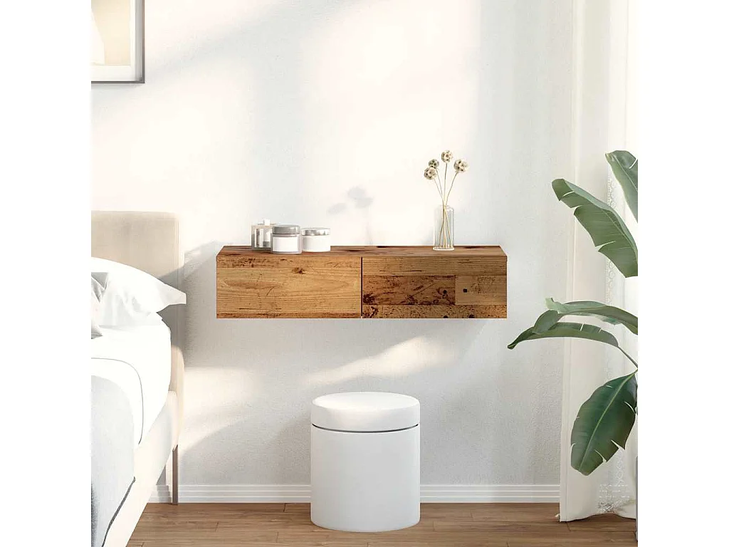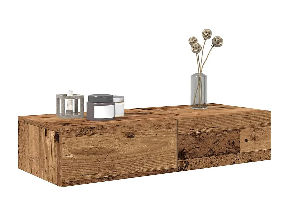 Étagère murale avec tiroirs vieux bois bois d'ingénierie