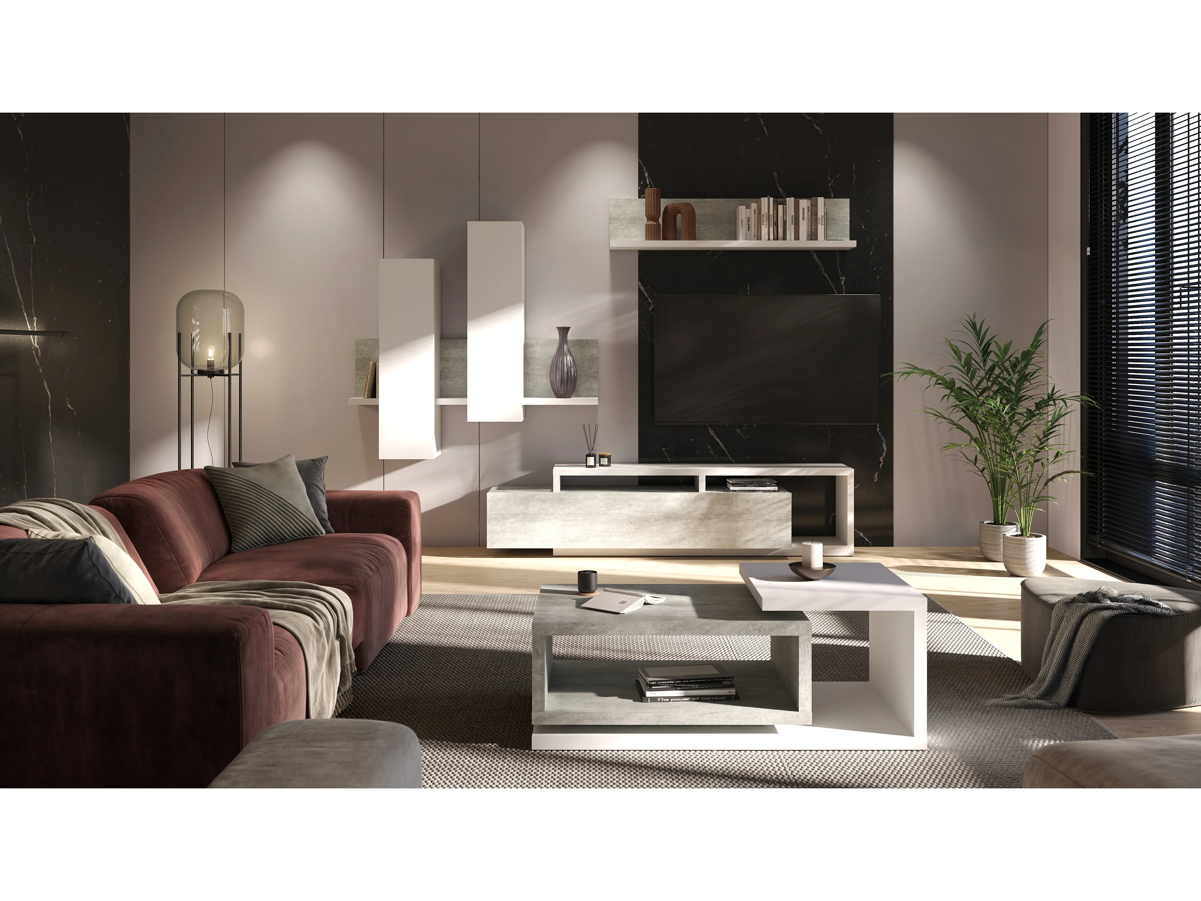 Ensemble de 4 étagères murales - 180 x 29 x 108 cm - 2 meuble mural Leds + 2 étagères - aggloméré - blanc