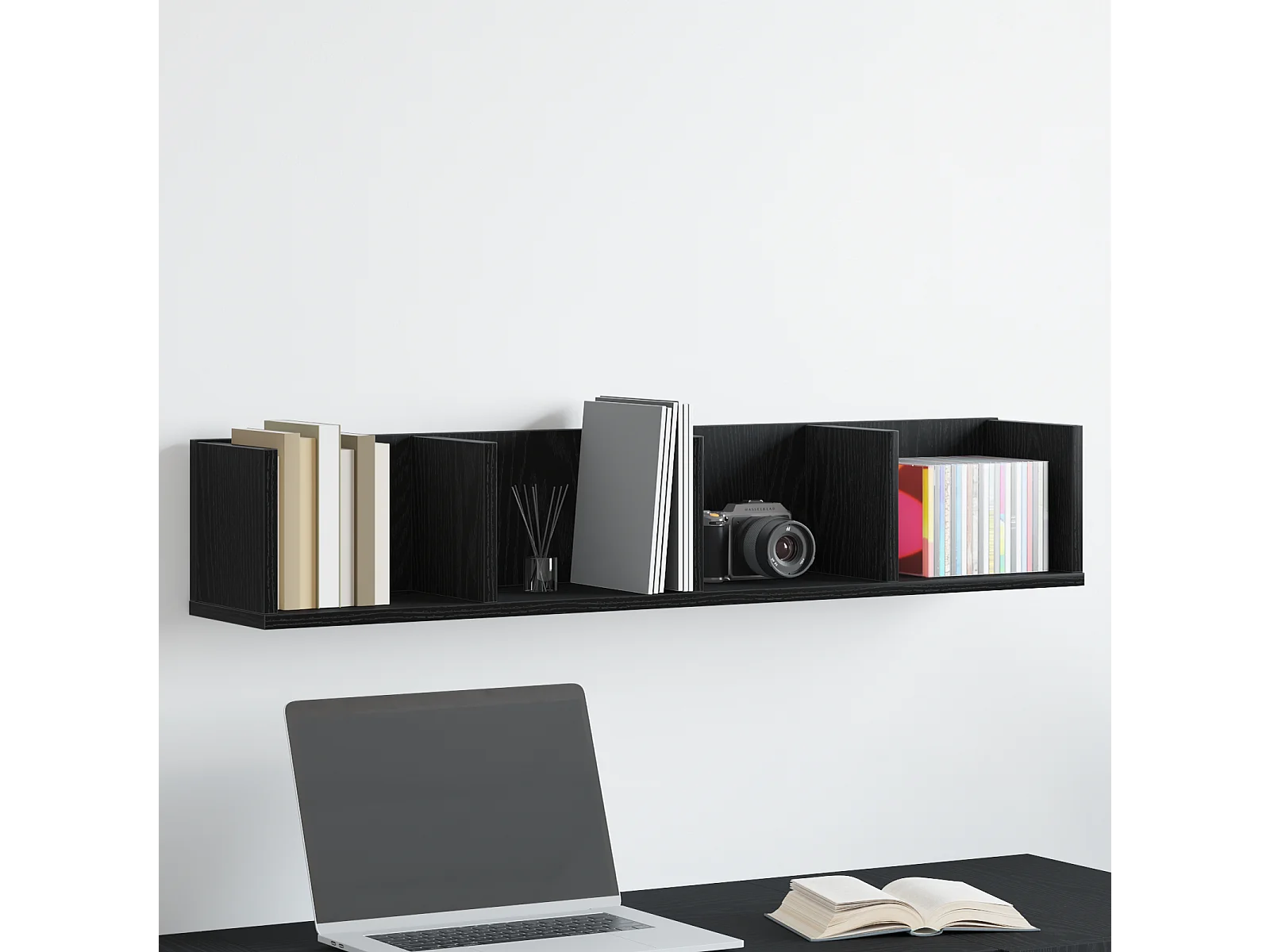 Étagère murale CD en chêne noir 75x18x18 cm en bois d'ingénierie