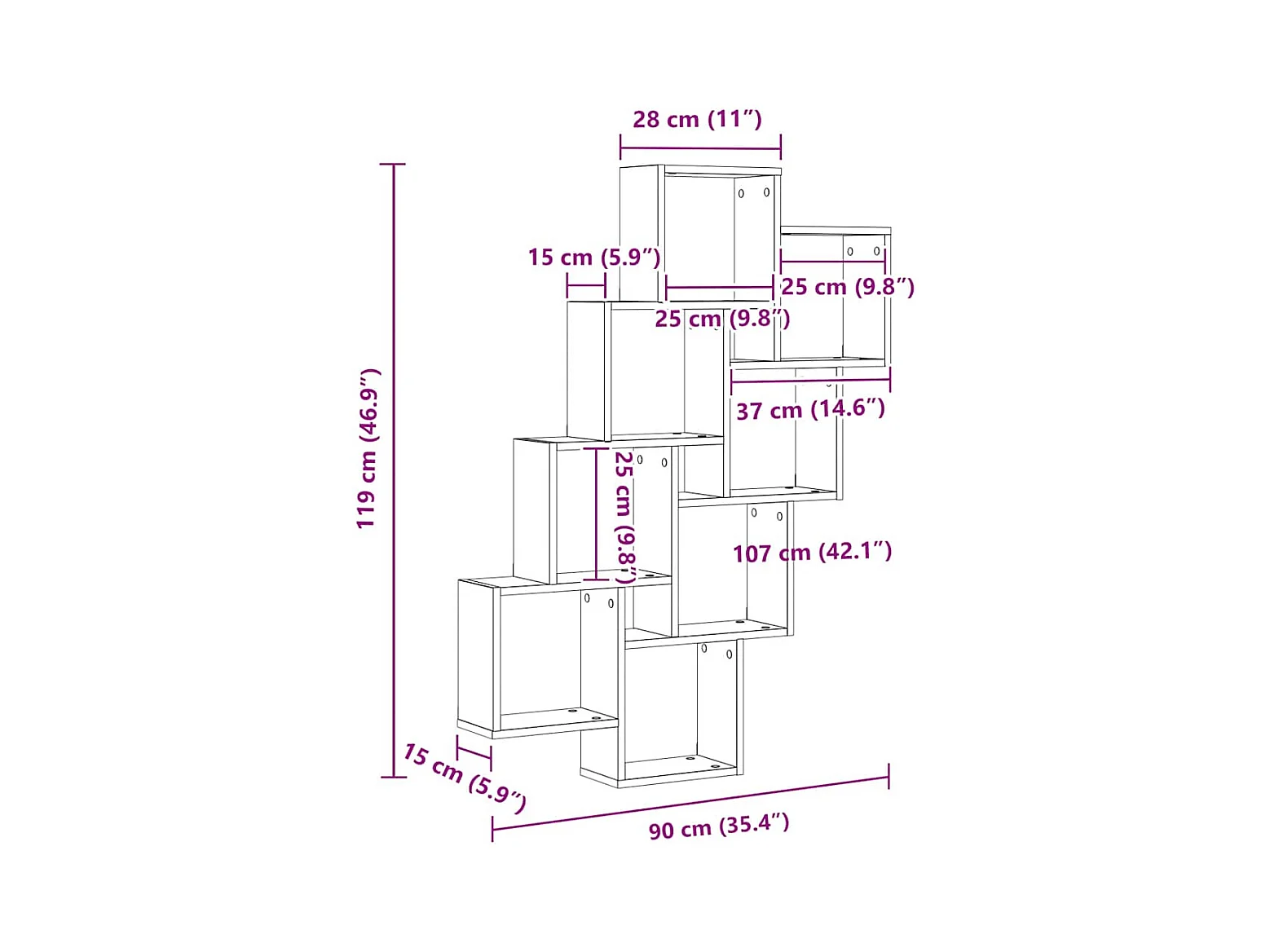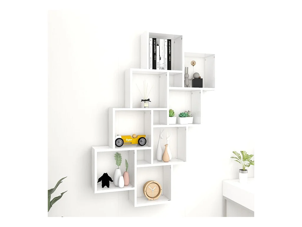 Étagère murale cube Blanc 90x15x119 cm Bois d’ingénierie