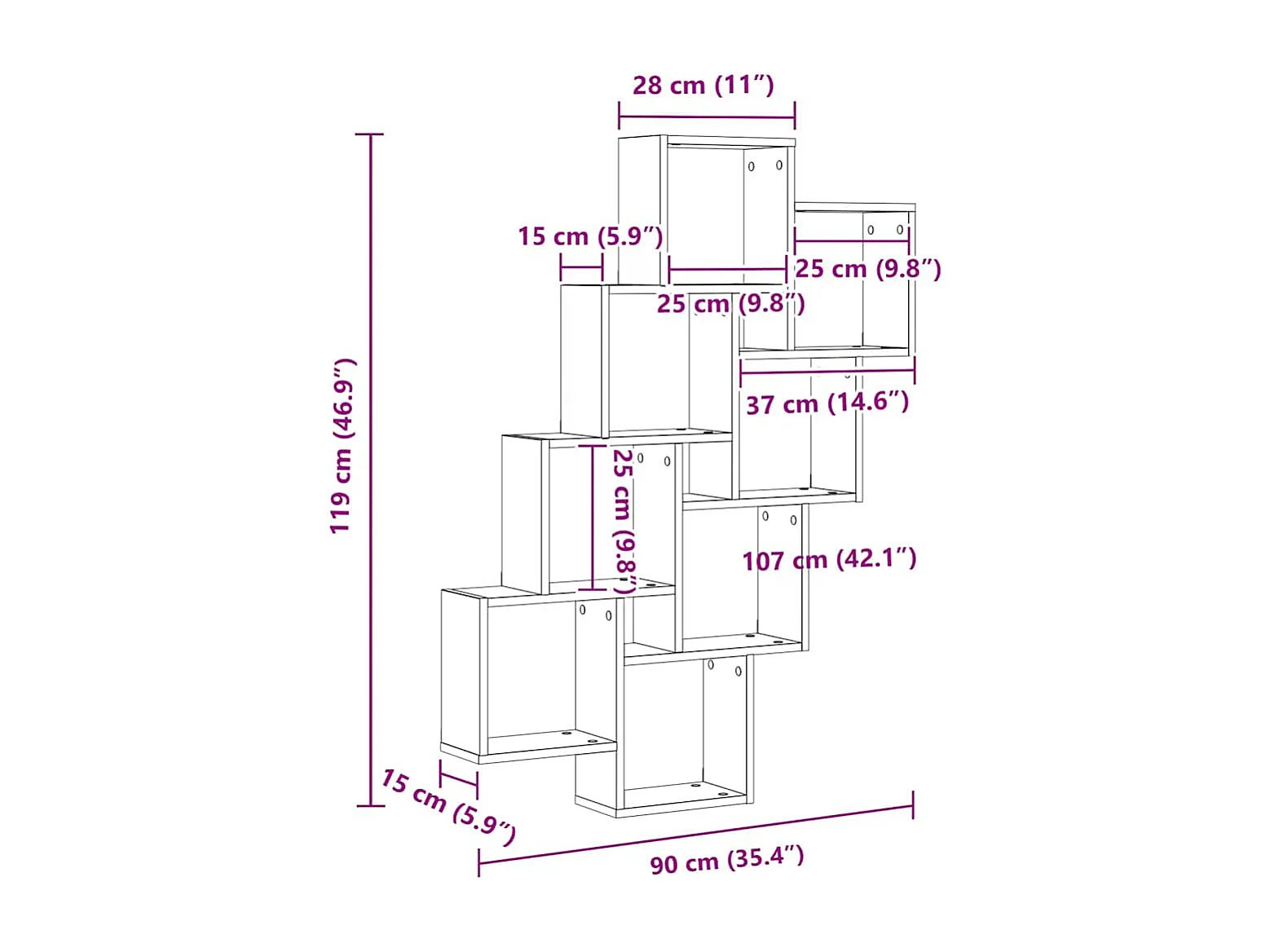 Étagère murale cube Gris béton 90x15x119 cm Bois d’ingénierie