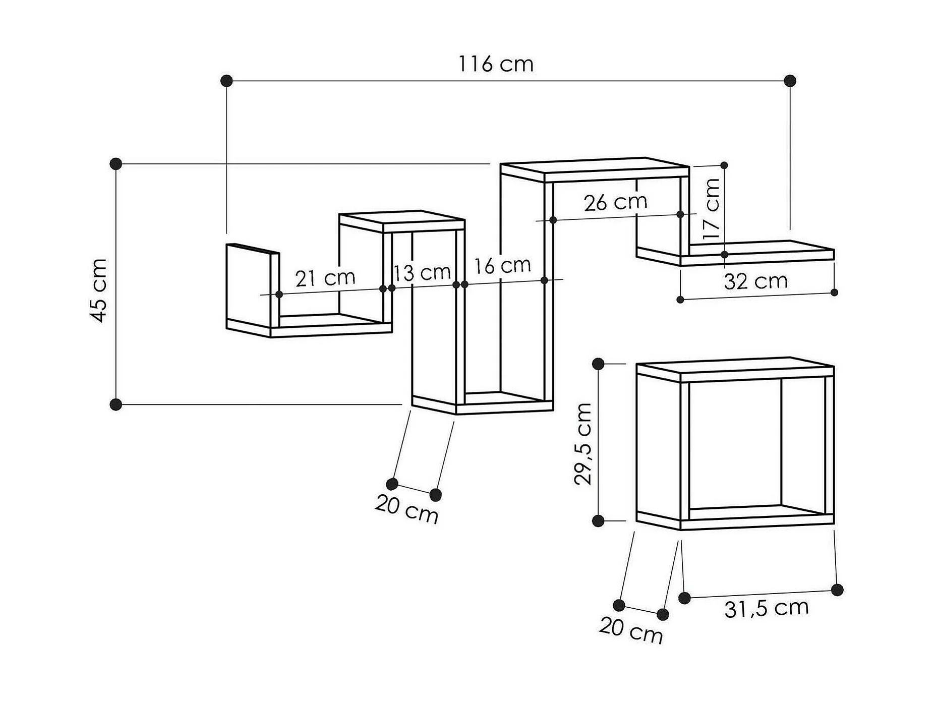 Étagère murale Cyllene, Étagère, Tablette murale, Rayonnage polyvalent, 116x20h45 cm, Chêne