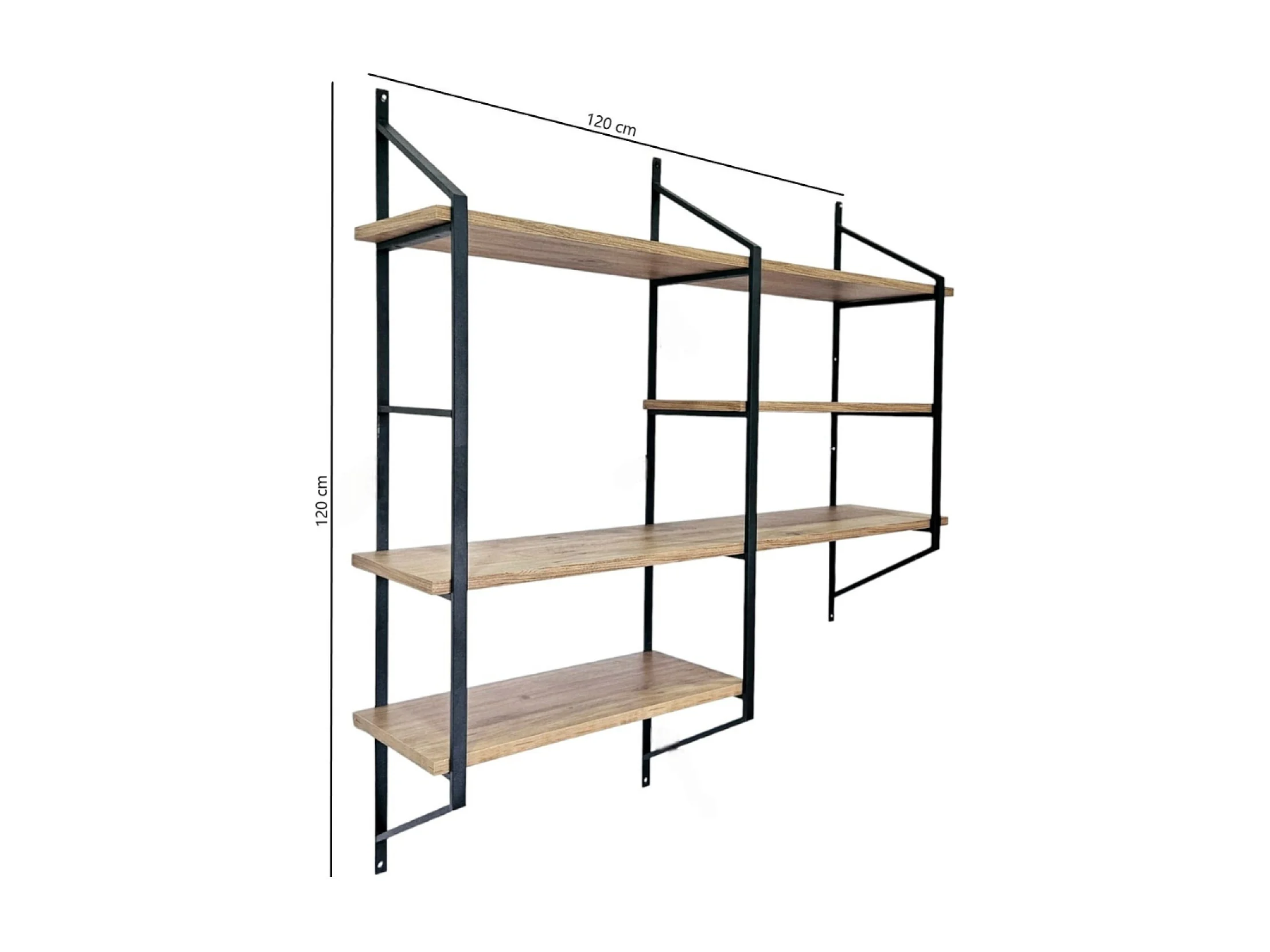 Etagère murale design en métal - 4 rangements - bois et noir YOMI
