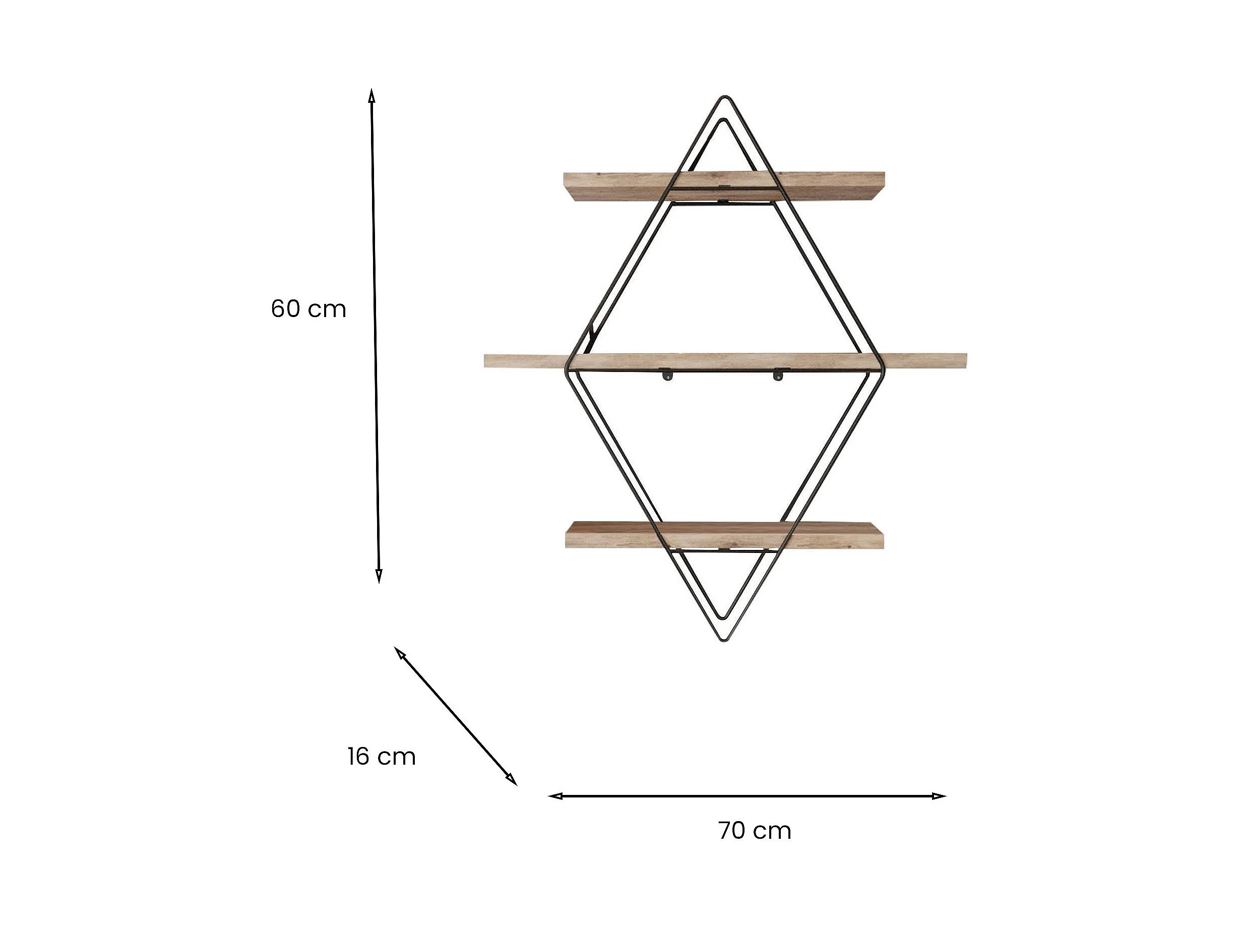 Etagère murale avec tablette en pin massif et Métal L60 cm - WREN