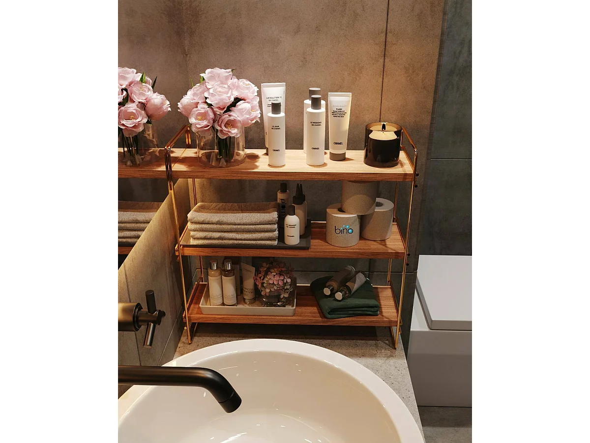 Étagère murale Dgentilin, Étagère, Tablette murale, Rayonnage polyvalent, 16x40 h45 cm, Or et Marron