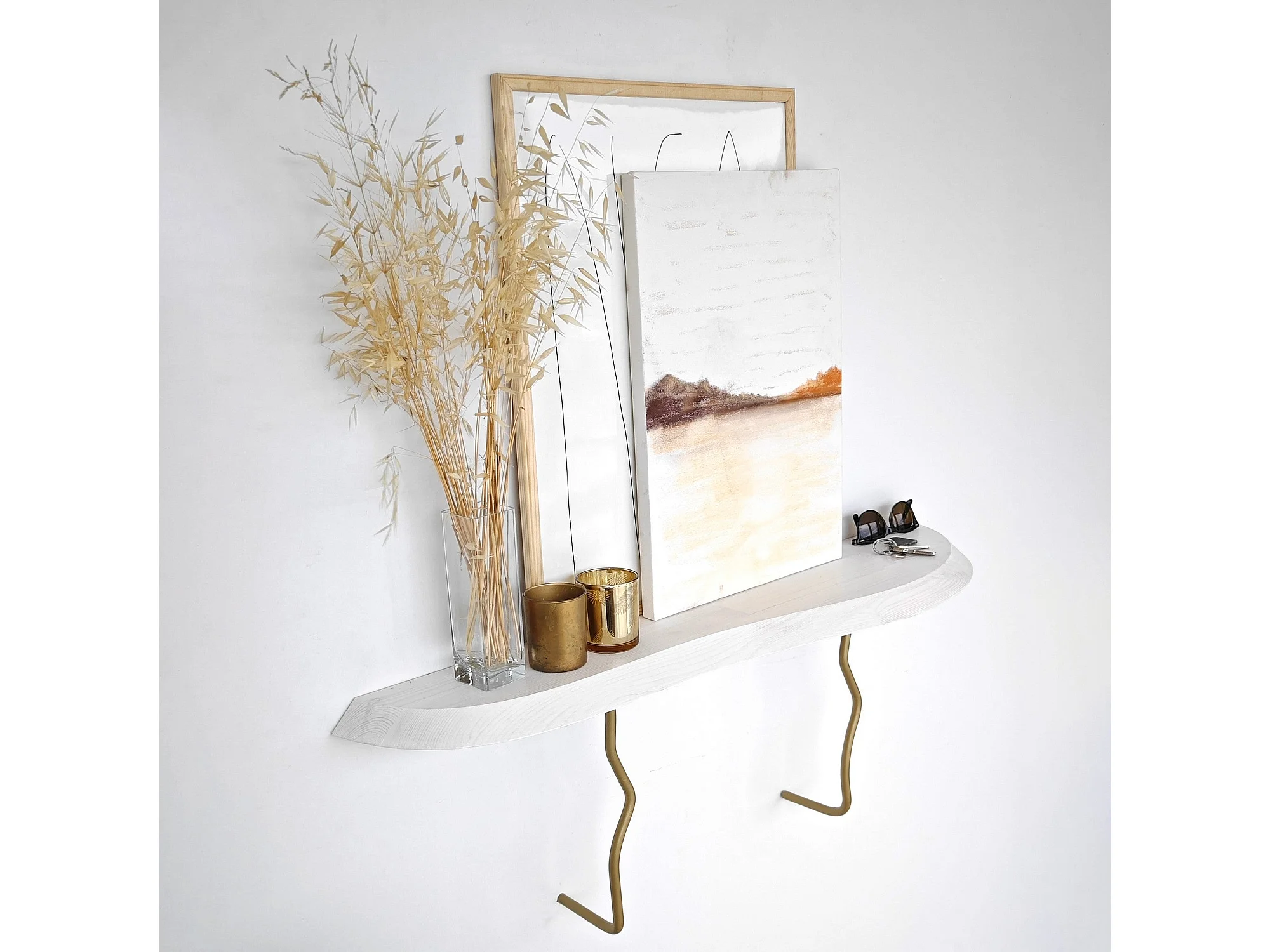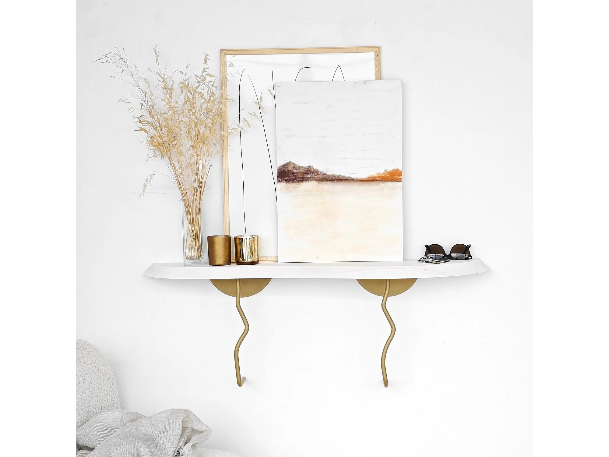 Étagère murale élégante, 99 cm x 22 cm, 100 % pin et structure en métal, finition or et blanc | Solution de rangement