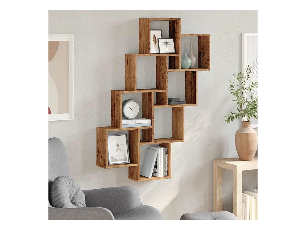 Étagère murale en forme de cube vieux bois 90x15x119,5 cm