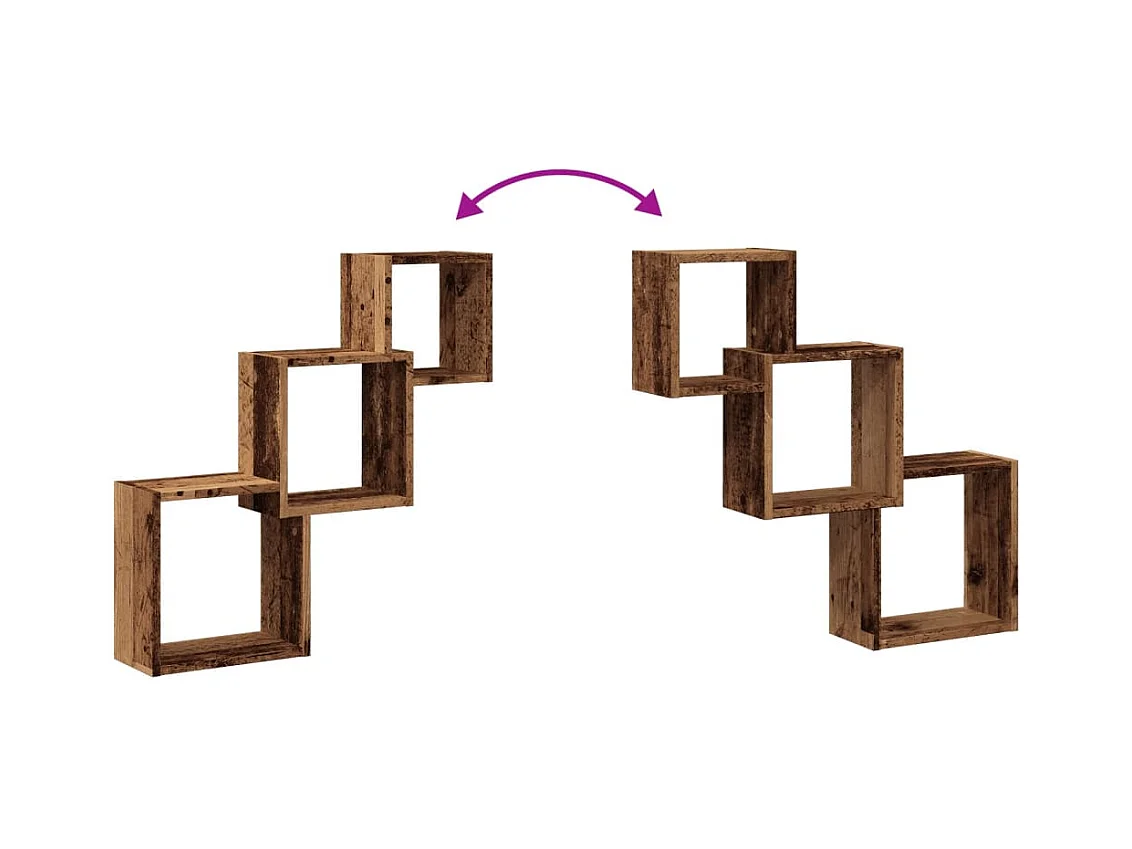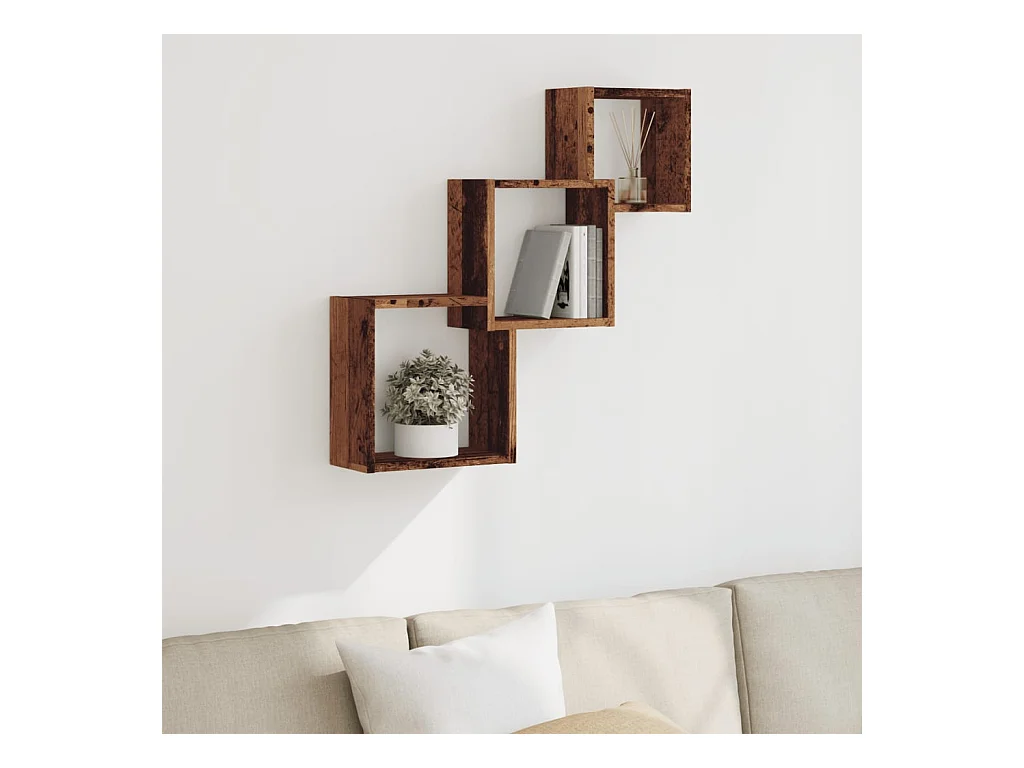 Étagère murale en forme de cube vieux bois bois d'ingénierie