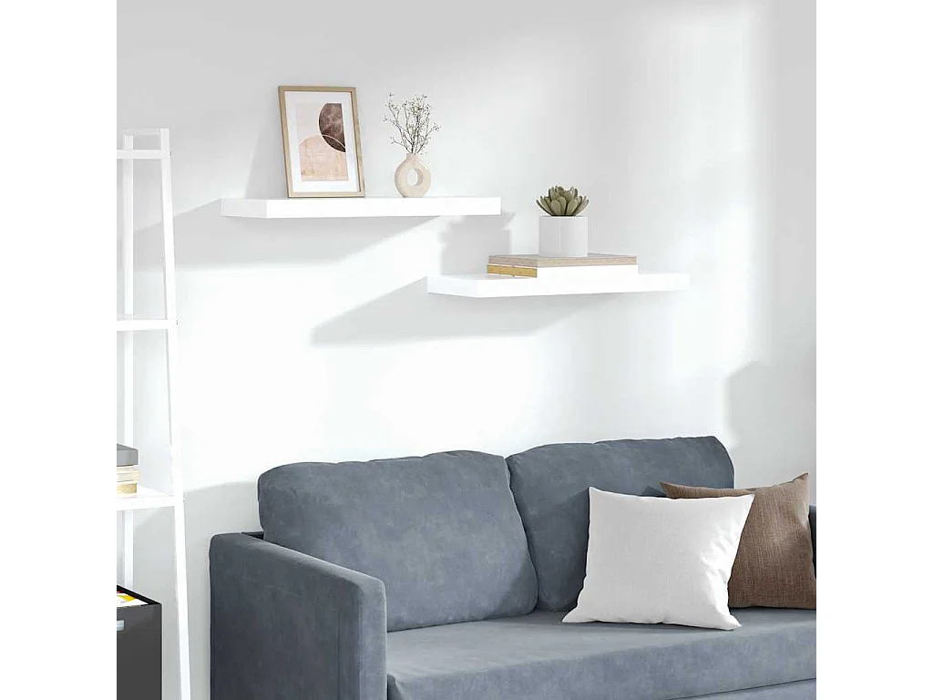 Étagère murale flottante 2 pcs Blanc brillant 60x23,5x3,8cm MDF