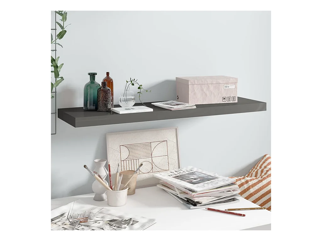 Étagère murale flottante Gris brillant 90x23,5x3,8 cm MDF