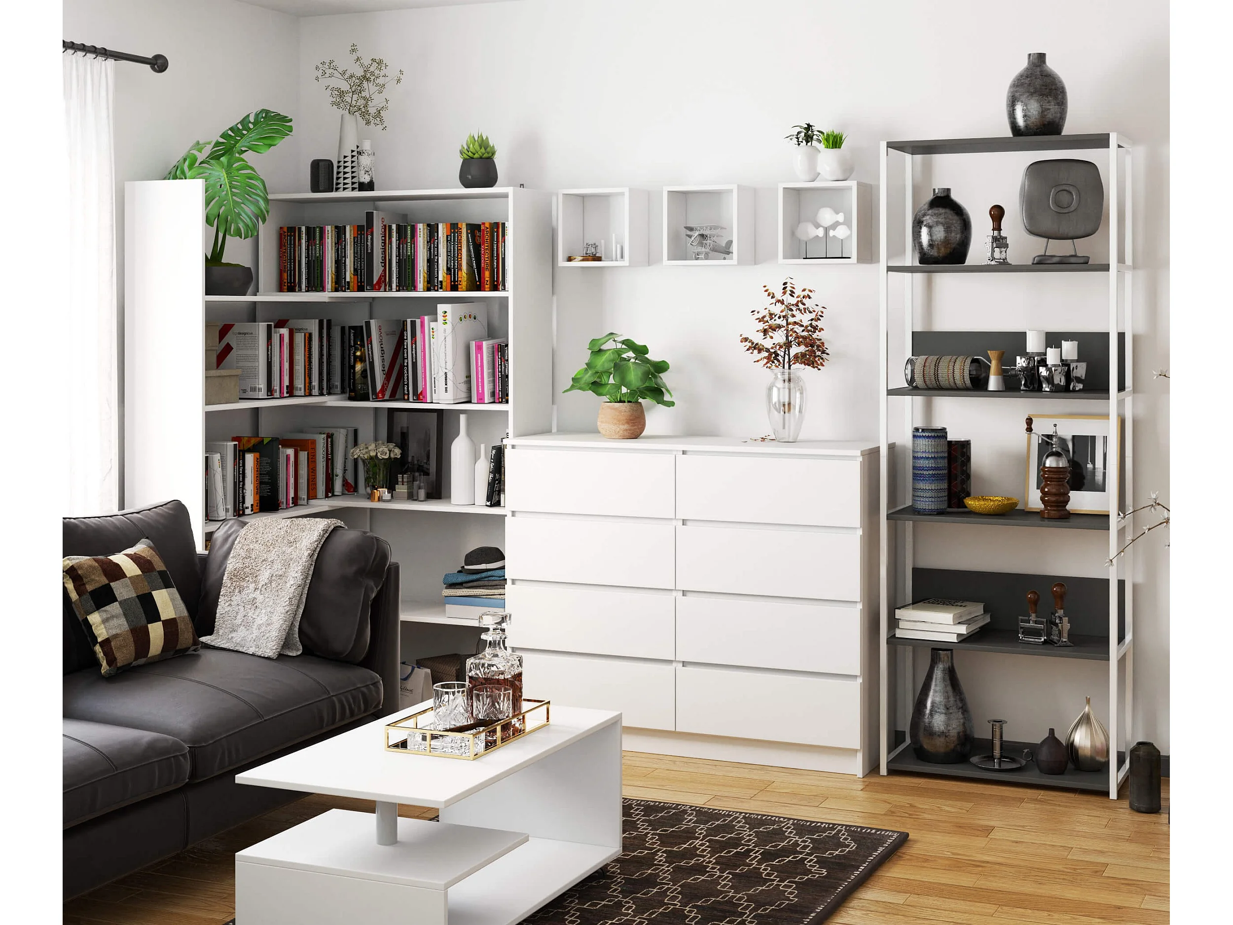 Étagère murale industrielle AKORD Blanche - Grise 70 cm 6 étagères 70x32x192 cm