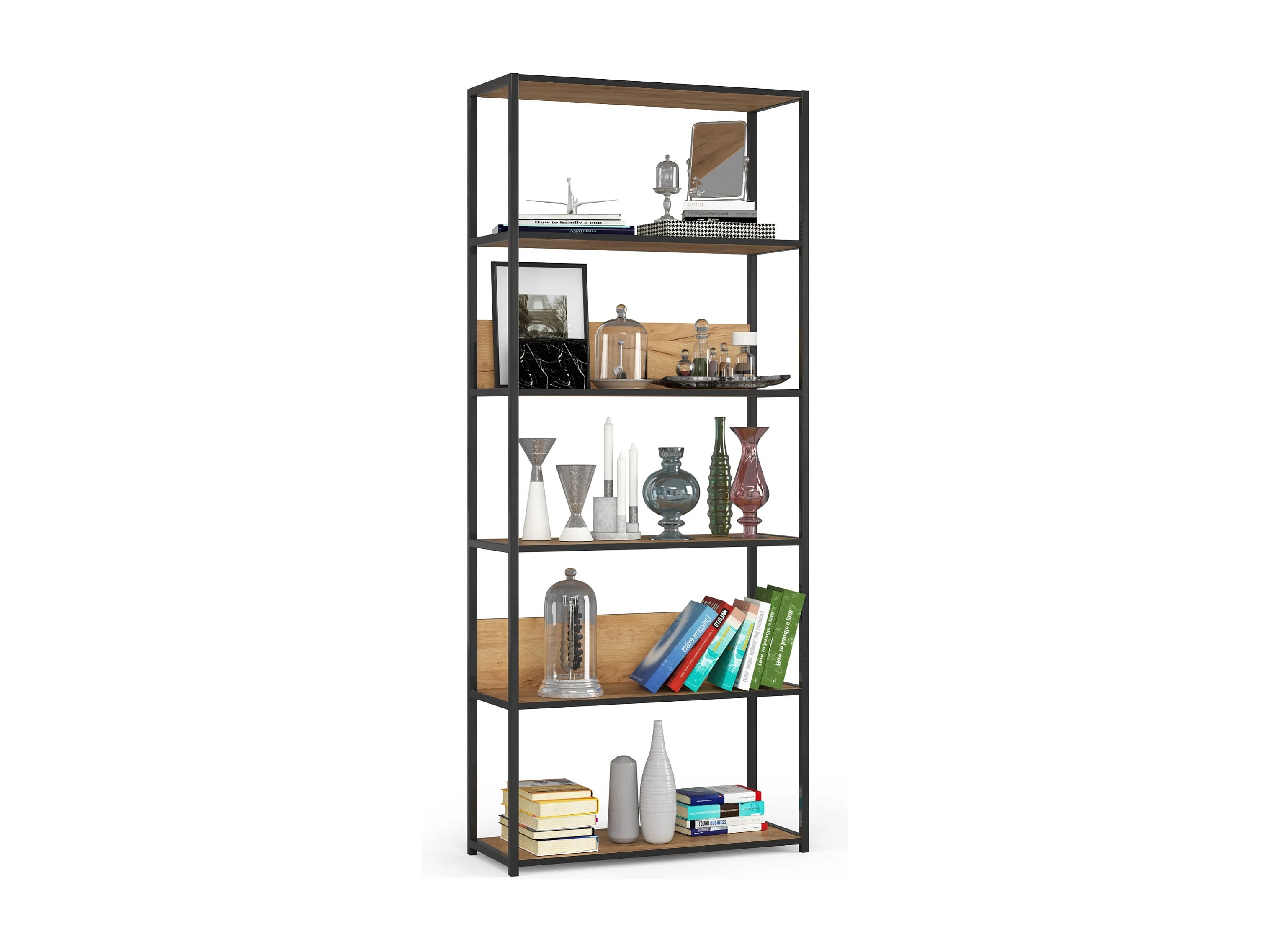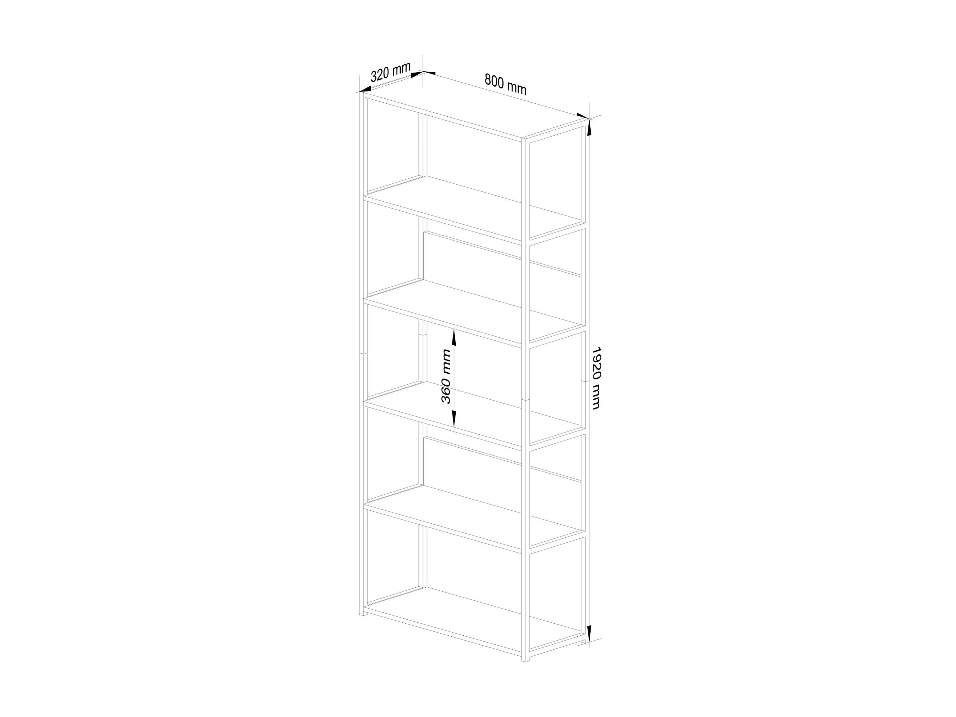Étagère murale industrielle sur pied AKORD Noire 80 cm façade Chêne Craft 6 étagères 80x32x192 cm