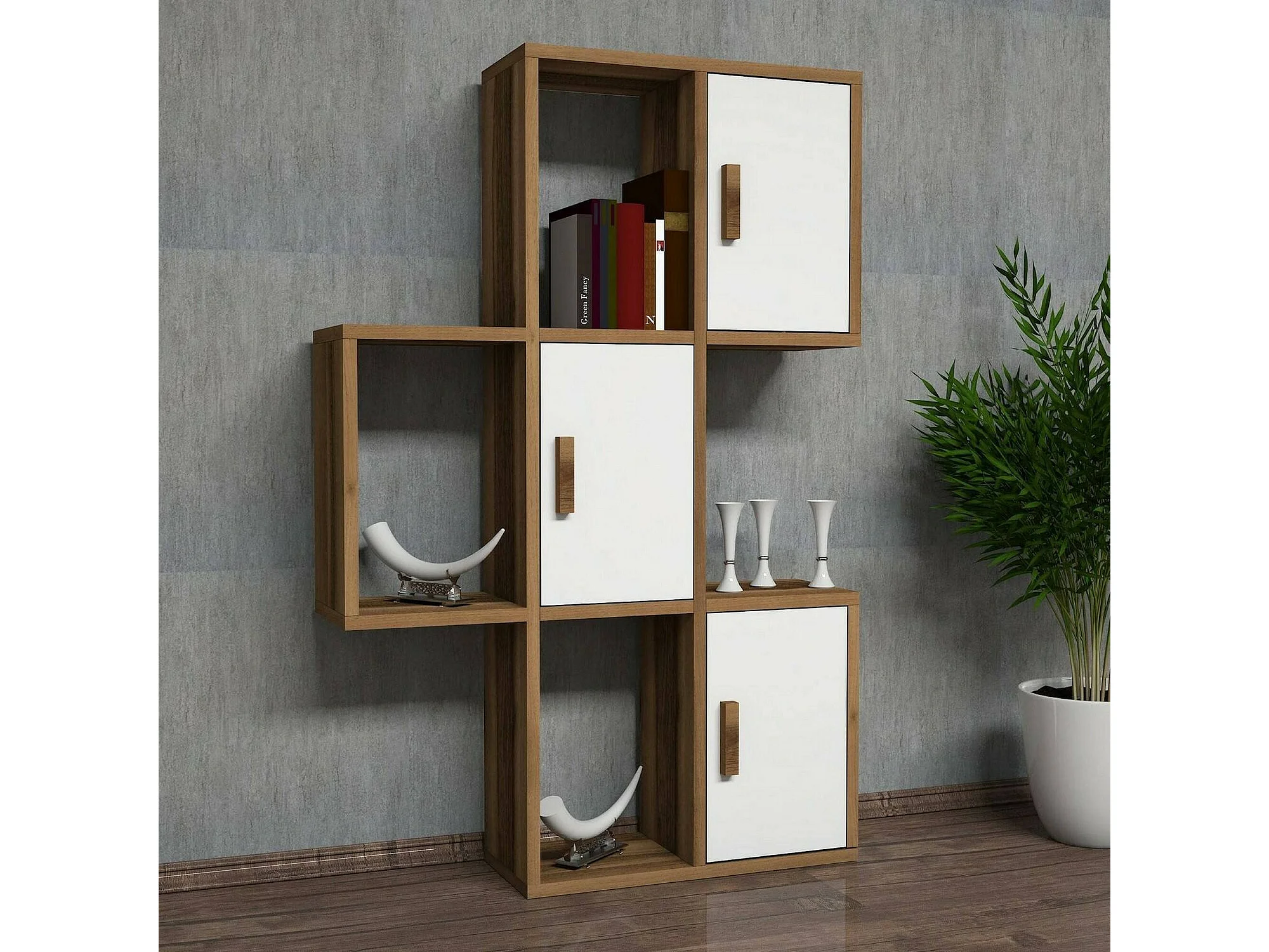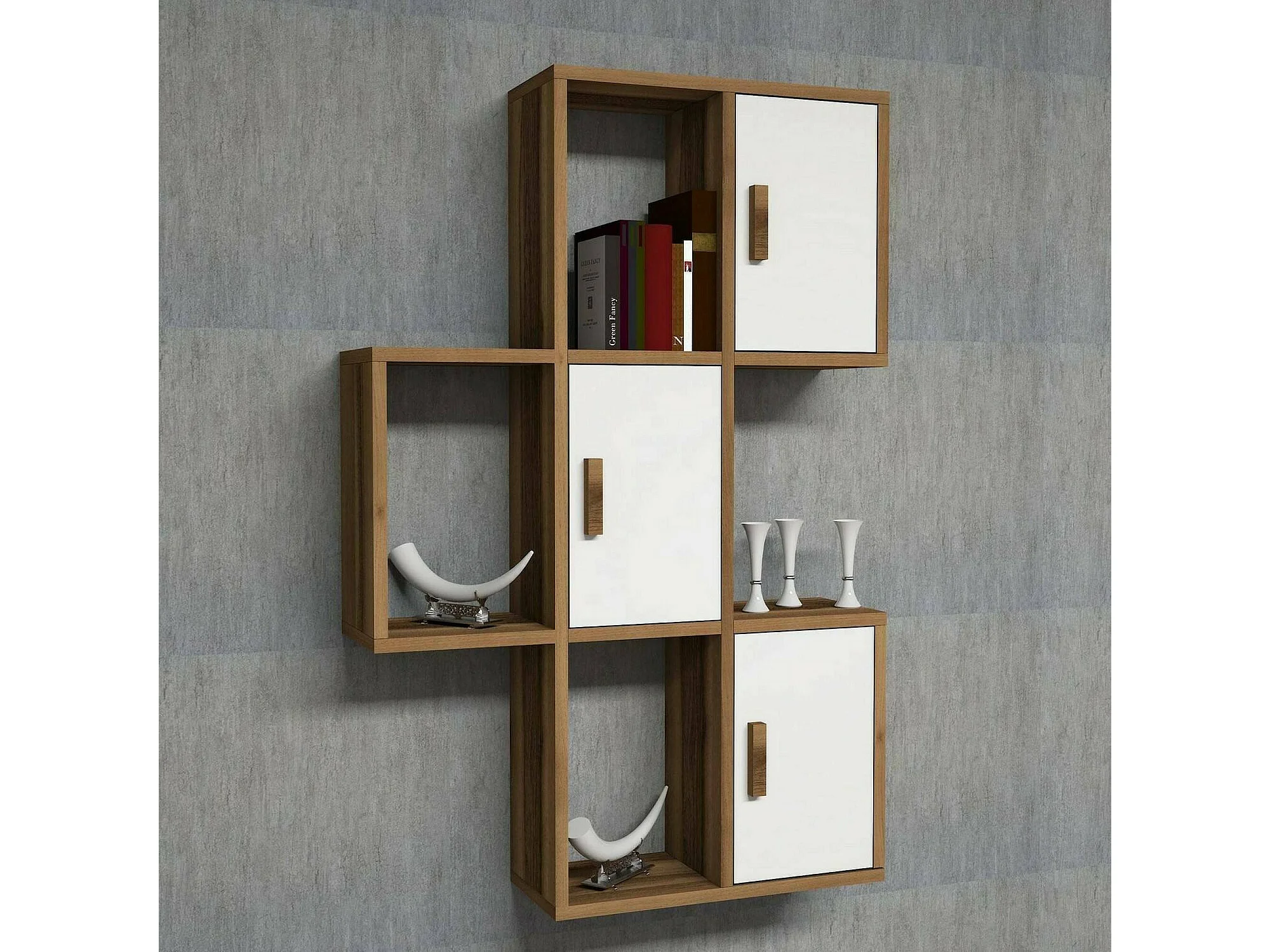 Étagère murale Lunara, Étagère, Tablette murale, Rayonnage polyvalent, 50x20h113 cm, Noyer et Blanc