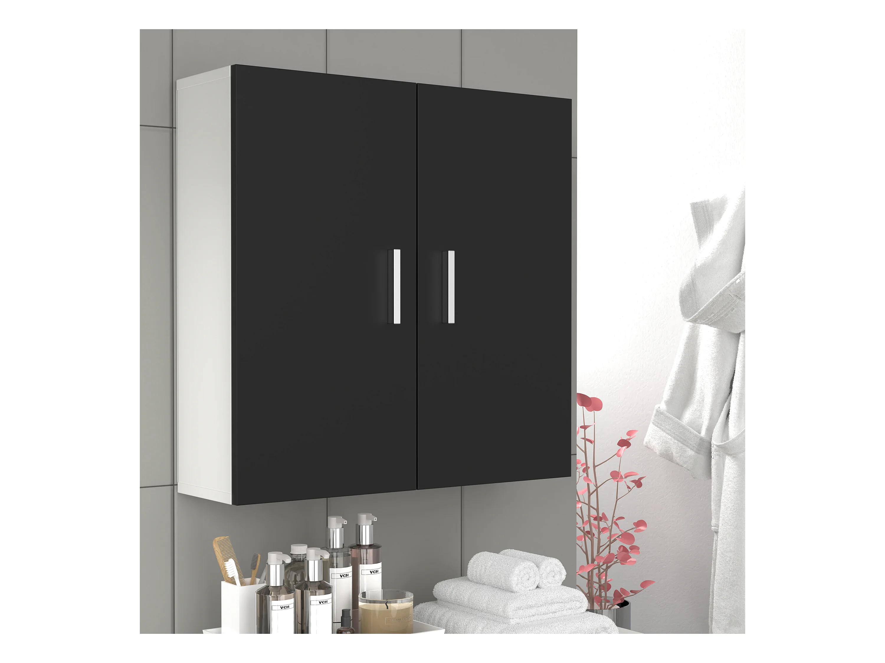 Bathroom furniture wall cabinet Landos White / Black H. 60 x W. 60 x D. 18 cm