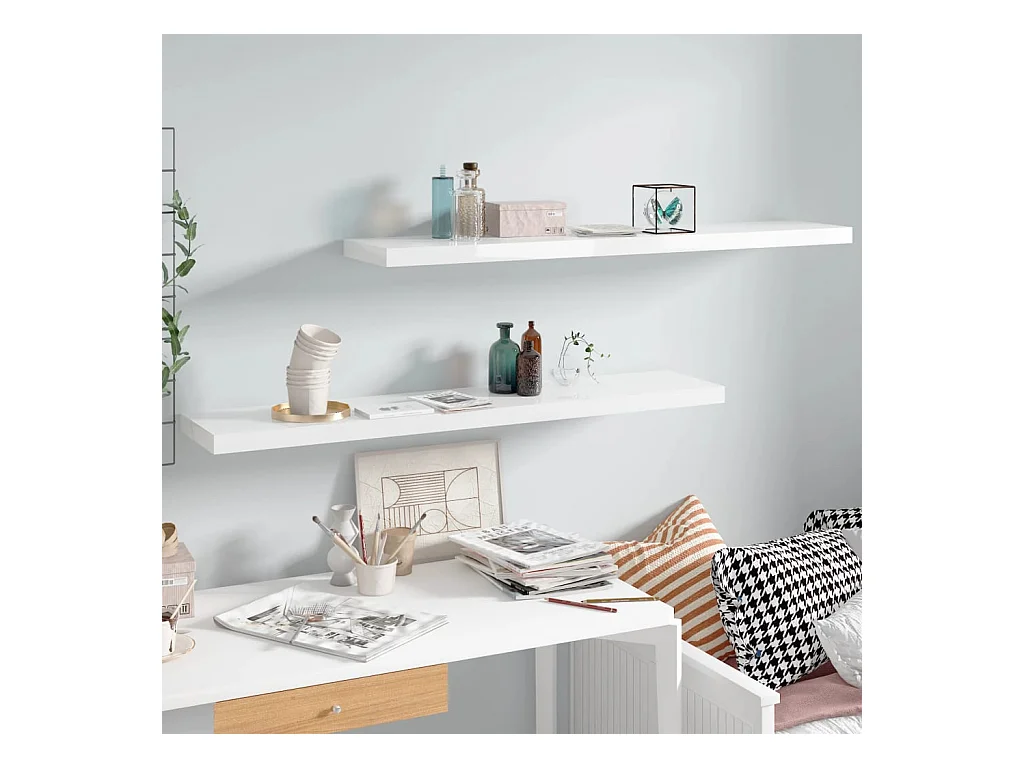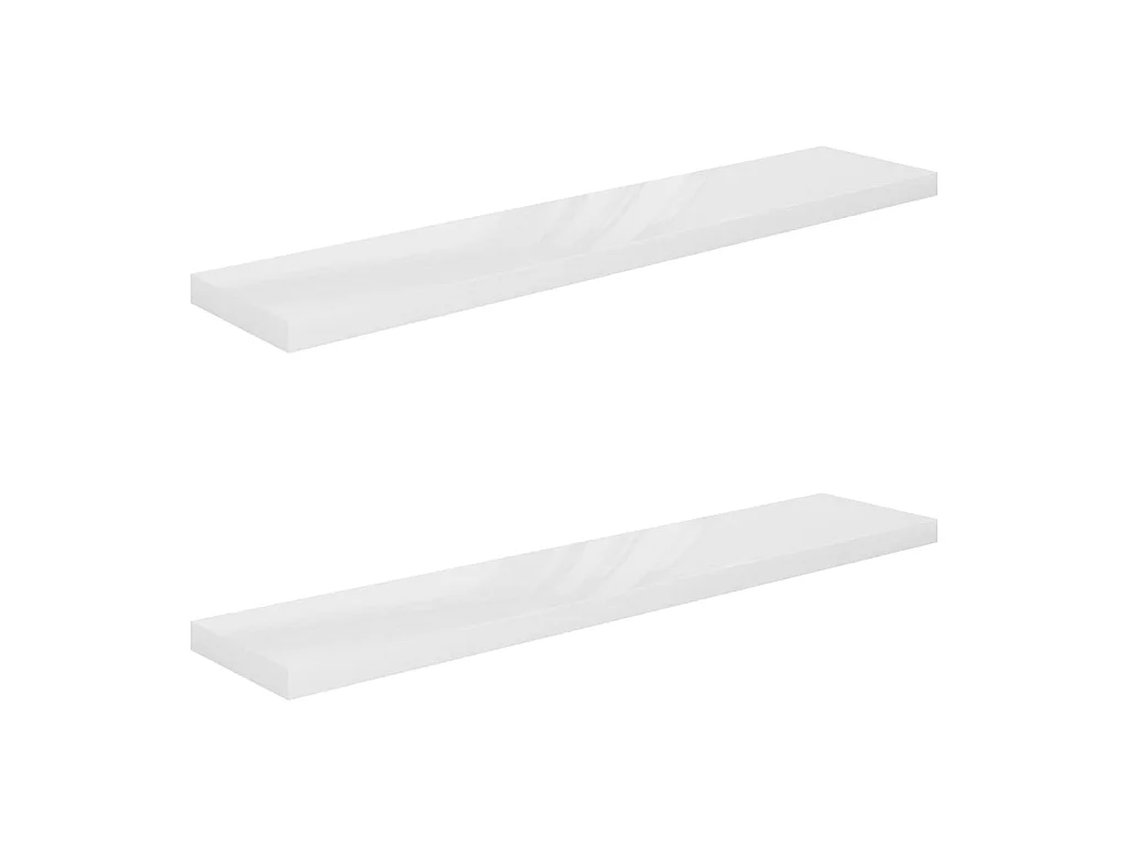 Étagère murale murale 2pcs Blanc brillant 120x23,5x3,8cm MDF OFR38389 BonneVie Meuble