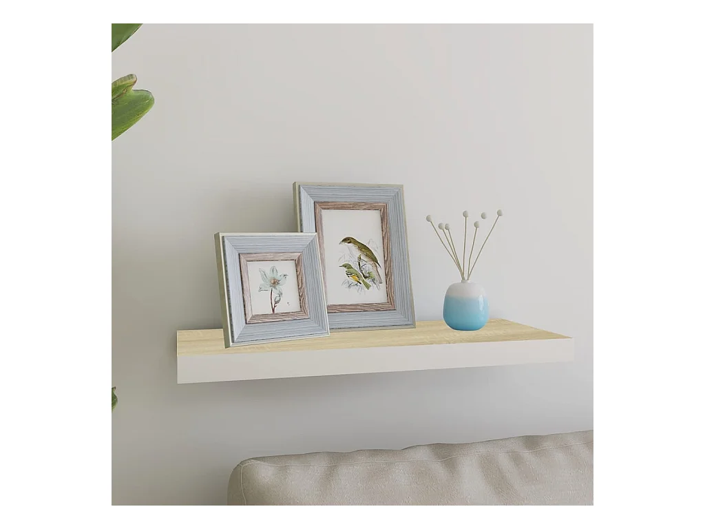 Étagère murale murale chêne et blanc 60x23,5x3,8 cm MDF OFR25257 BonneVie Meuble