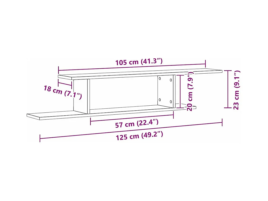 Étagère murale pour téléviseur, chêne noir, 125 x 18 x 23 cm, en bois d'ingénierie