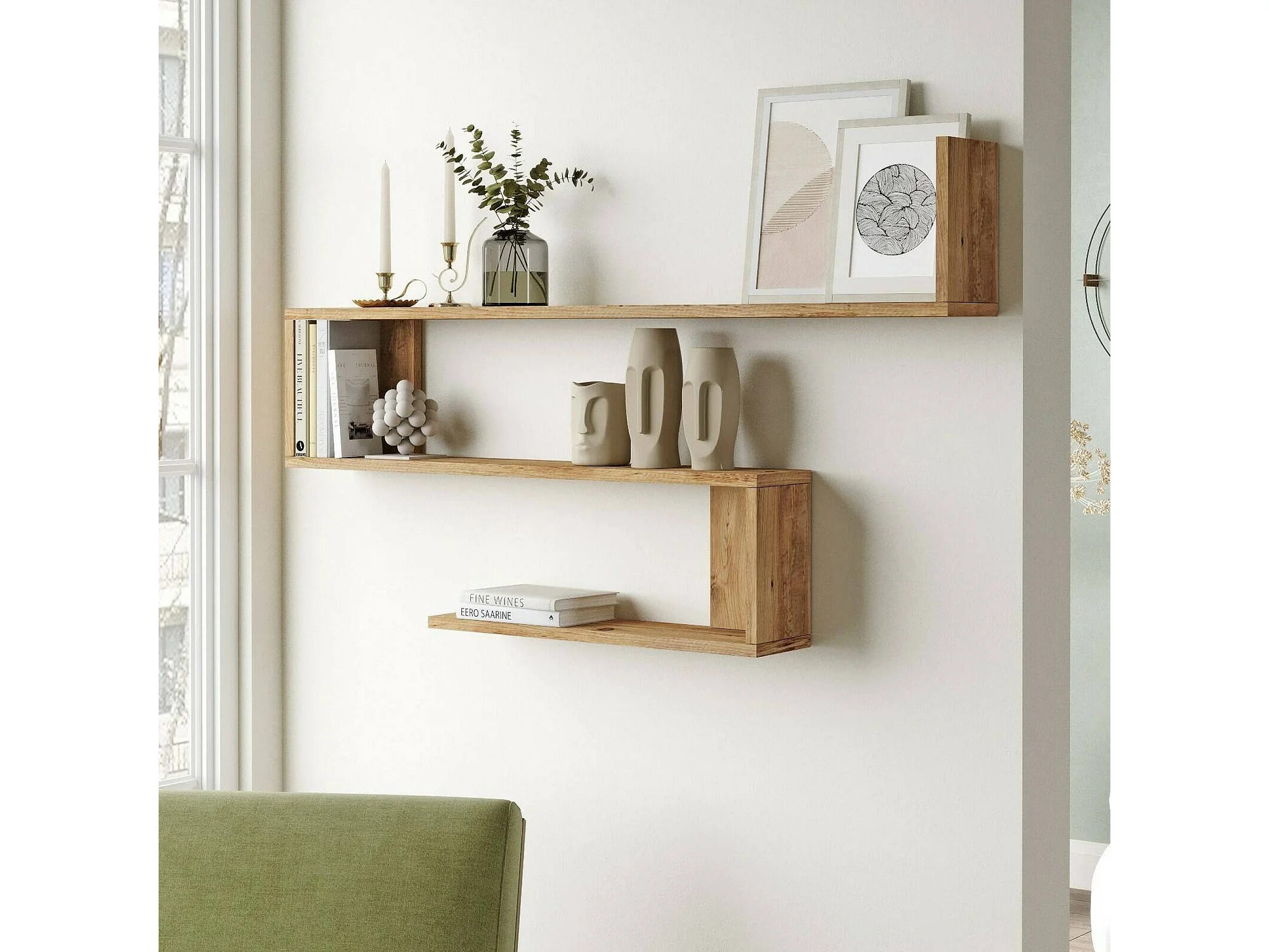 Étagère murale Stellara, Étagère, Tablette murale, Rayonnage polyvalent, 120x15h71 cm, Chêne