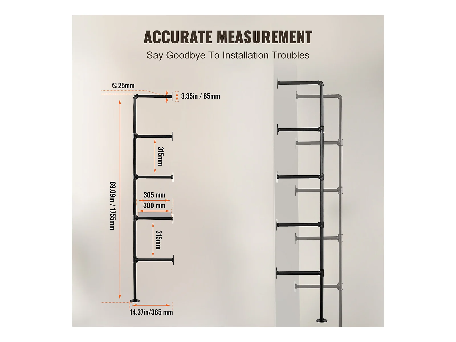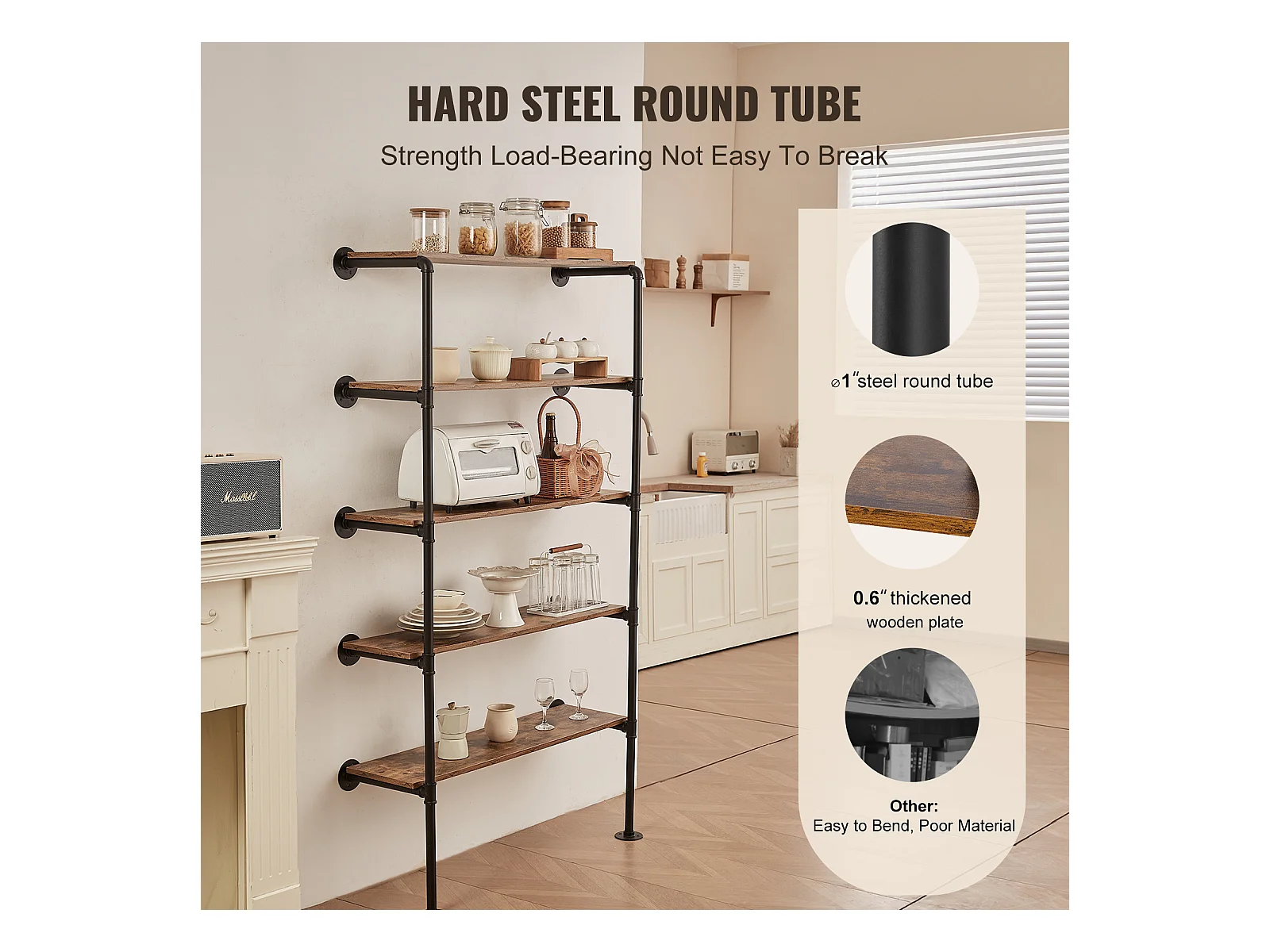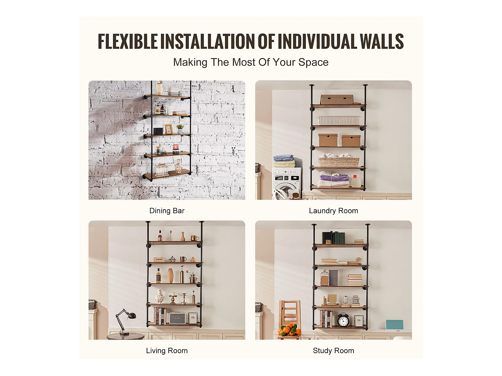 Étagère Murale Tuyau Industrielle SucceBuy, 5 Niveaux, Lot de 2, pour Planche 30 cm, Montage Mural, Rangement, Métal