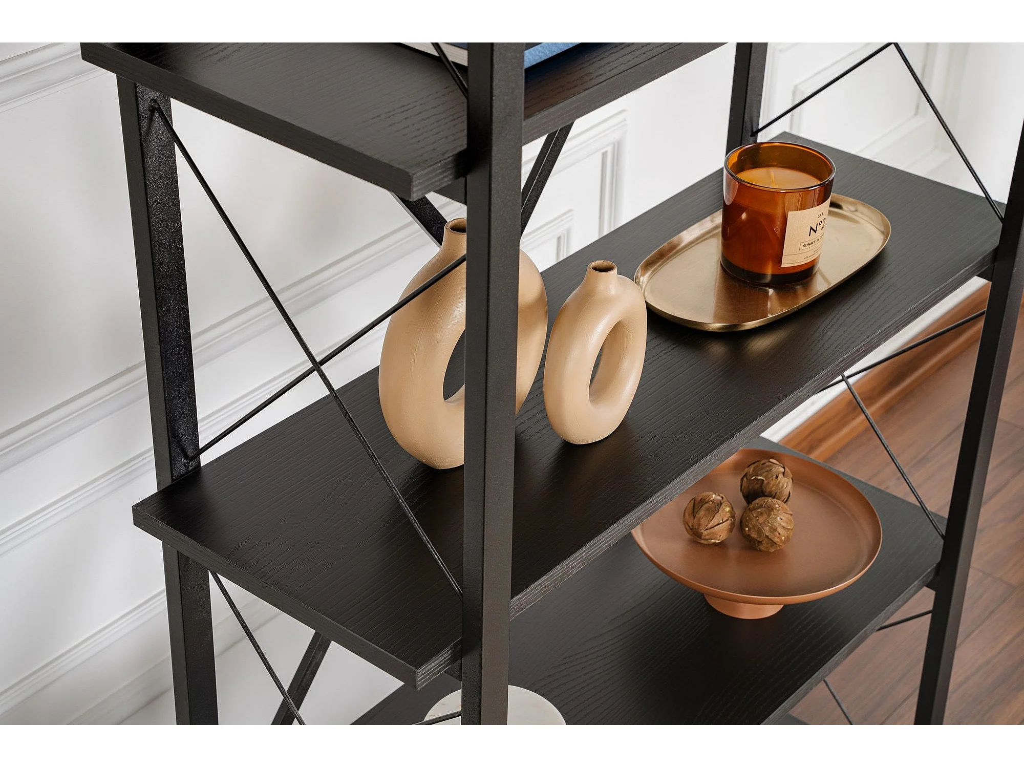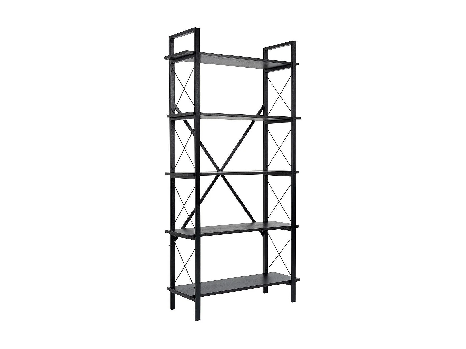 Étagère noire élégante avec structure en métal, 90 x 180 x 33,5 cm | Panneau de particules 100 % mélaminé | Design mural robuste et fonction