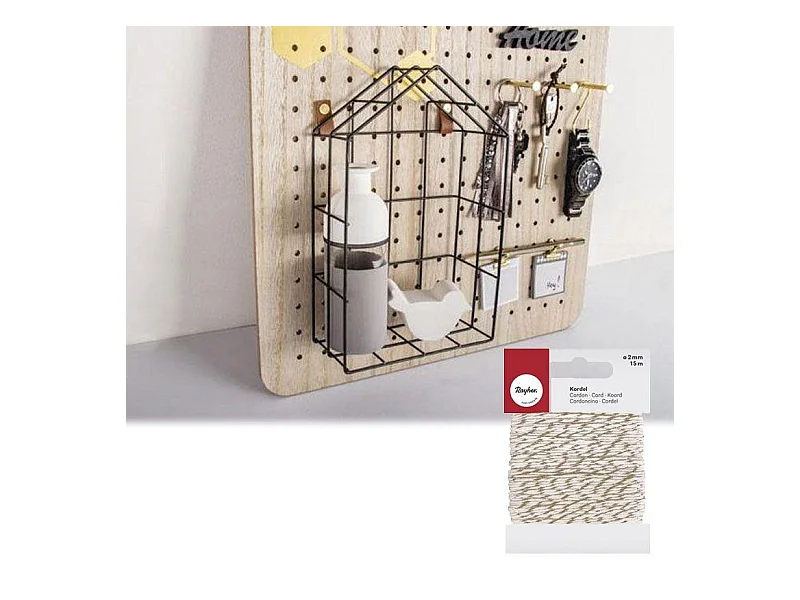 Etagère noire en fil de fer maison 16 x 25 cm + Ficelle dorée & blanche