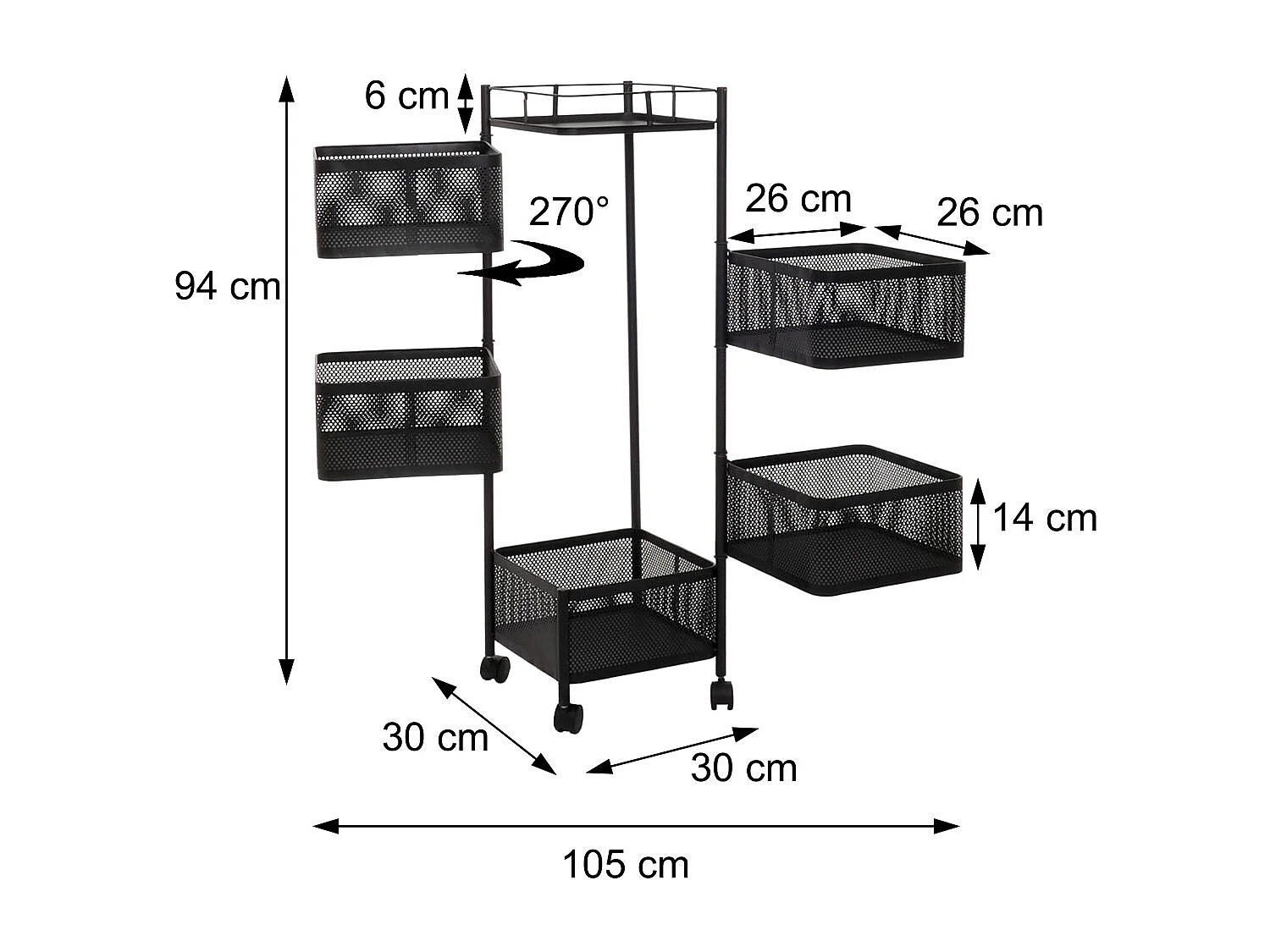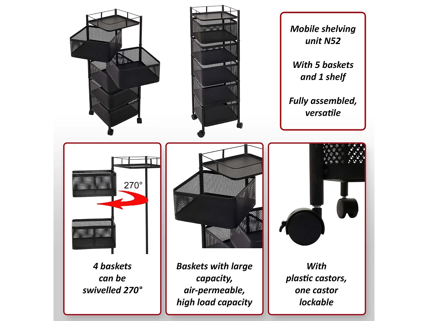 Étagère roulante MCW-N52, noir