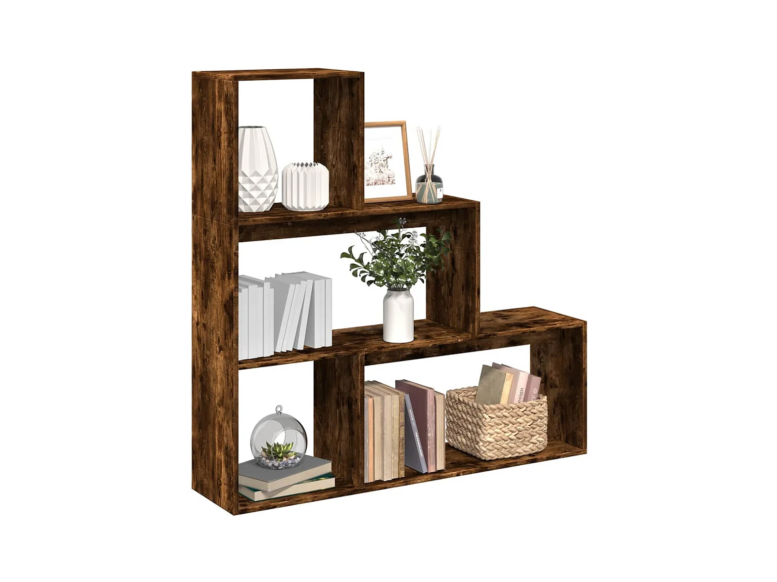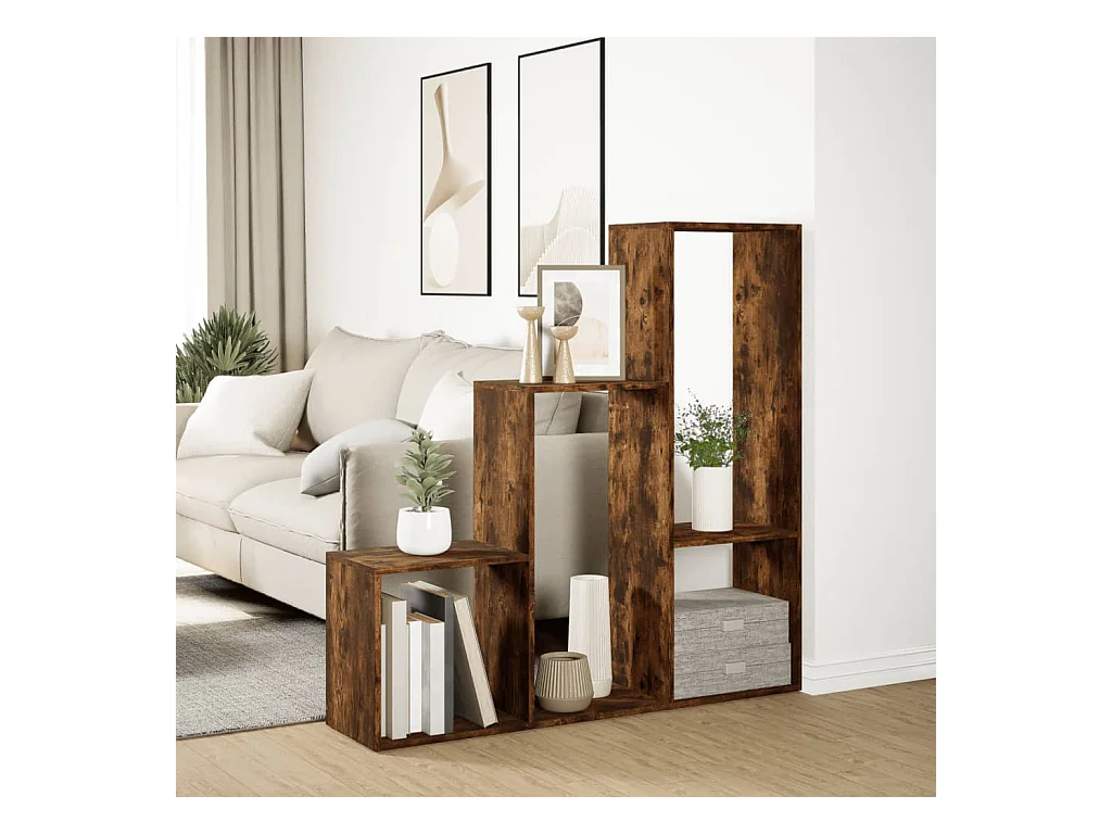 Étagère séparatrice de pièce 3 niveaux chêne fumé 123x29x123 cm