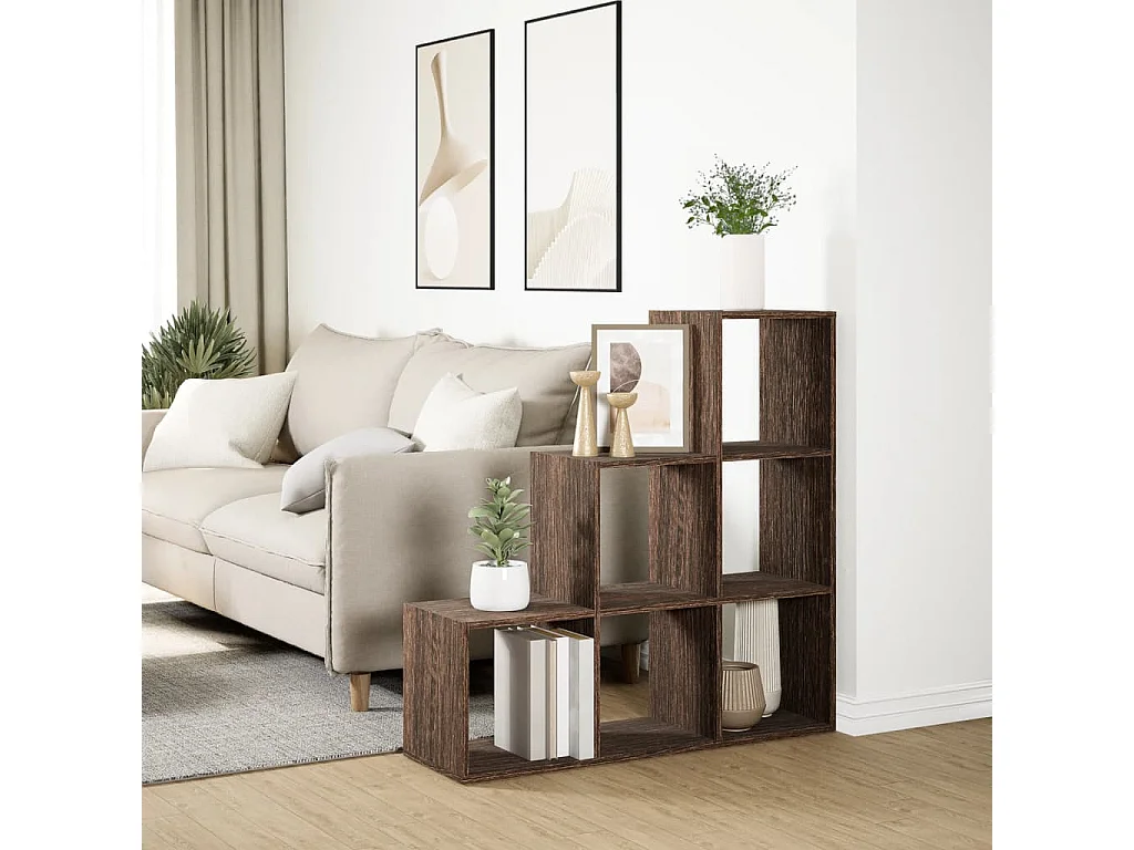 Étagère séparatrice de pièce 3niveaux chêne marron 123x29x123cm