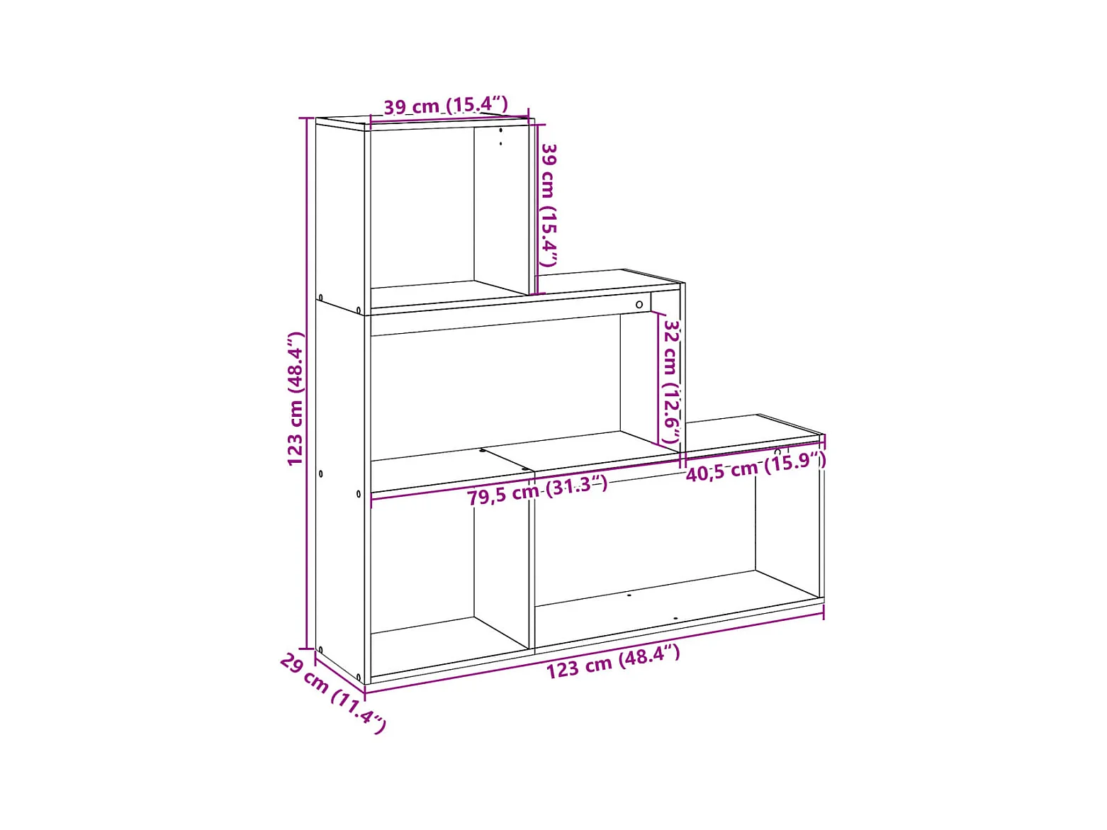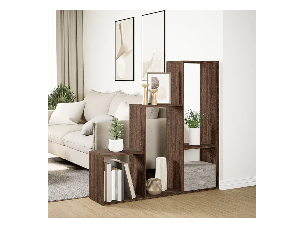 Étagère séparatrice de pièce 3niveaux chêne marron 123x29x123cm