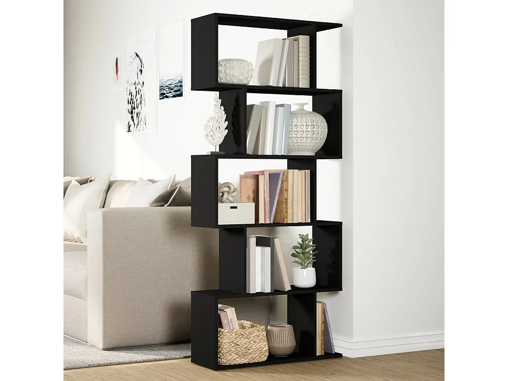Étagère séparatrice de pièce à 5 niveaux noir 70x24x161 cm
