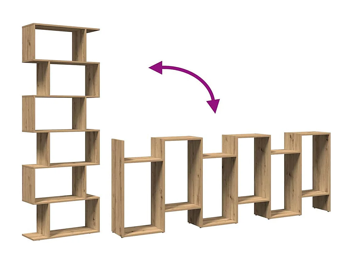 Étagère séparatrice de pièce à 6 niveaux chêne artisanal