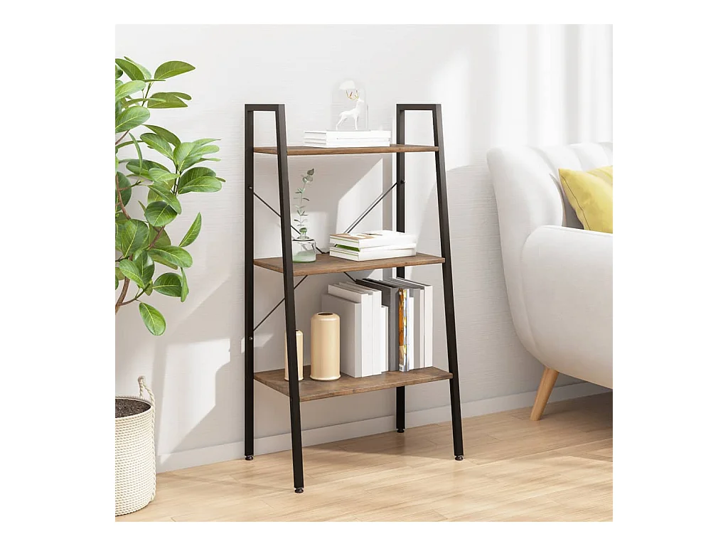 Étagère sur pied 3 niveaux Marron foncé et noir 56x35x108 cm