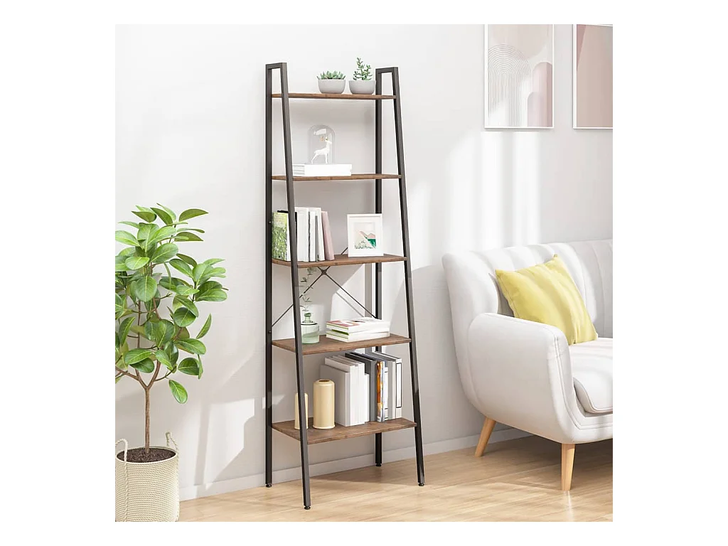 Étagère inclinée à 4 niveaux Marron foncé et noir 64x35x152,5cm OFR51555 BonneVie Meuble