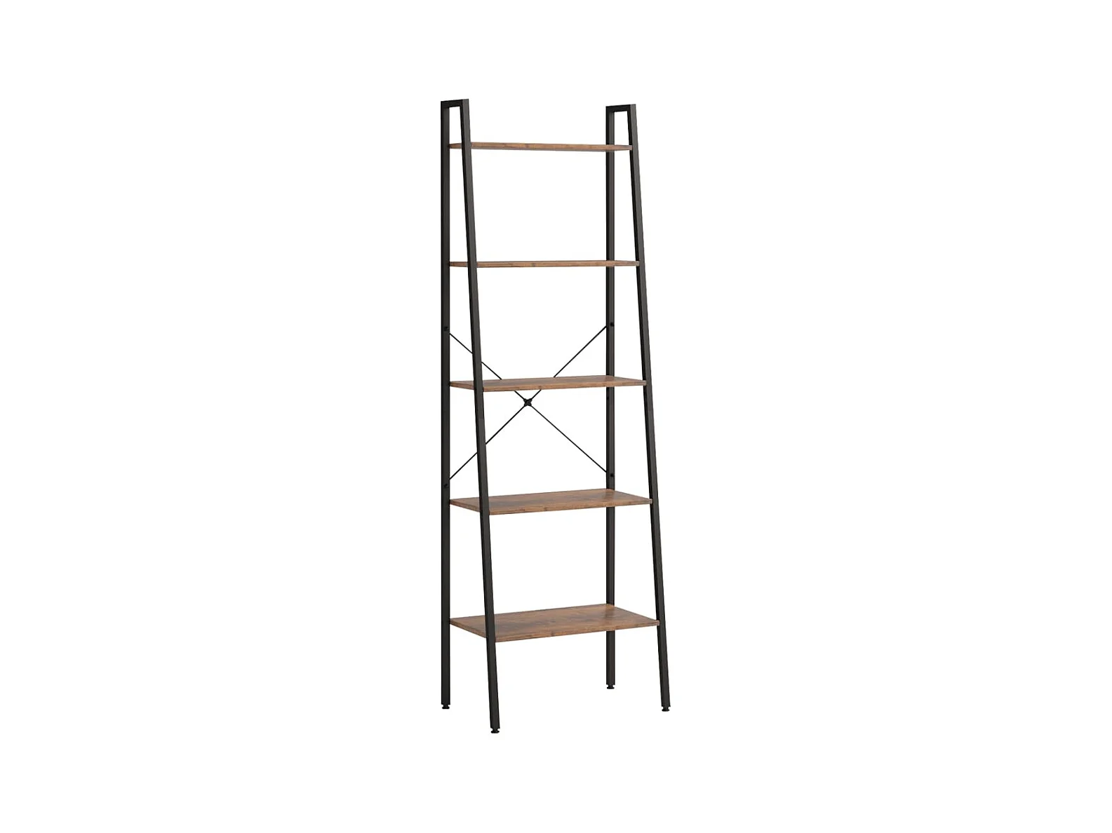 Étagère inclinée à 4 niveaux Marron clair et noir 64x35x152,5cm OFR96375 BonneVie Meuble
