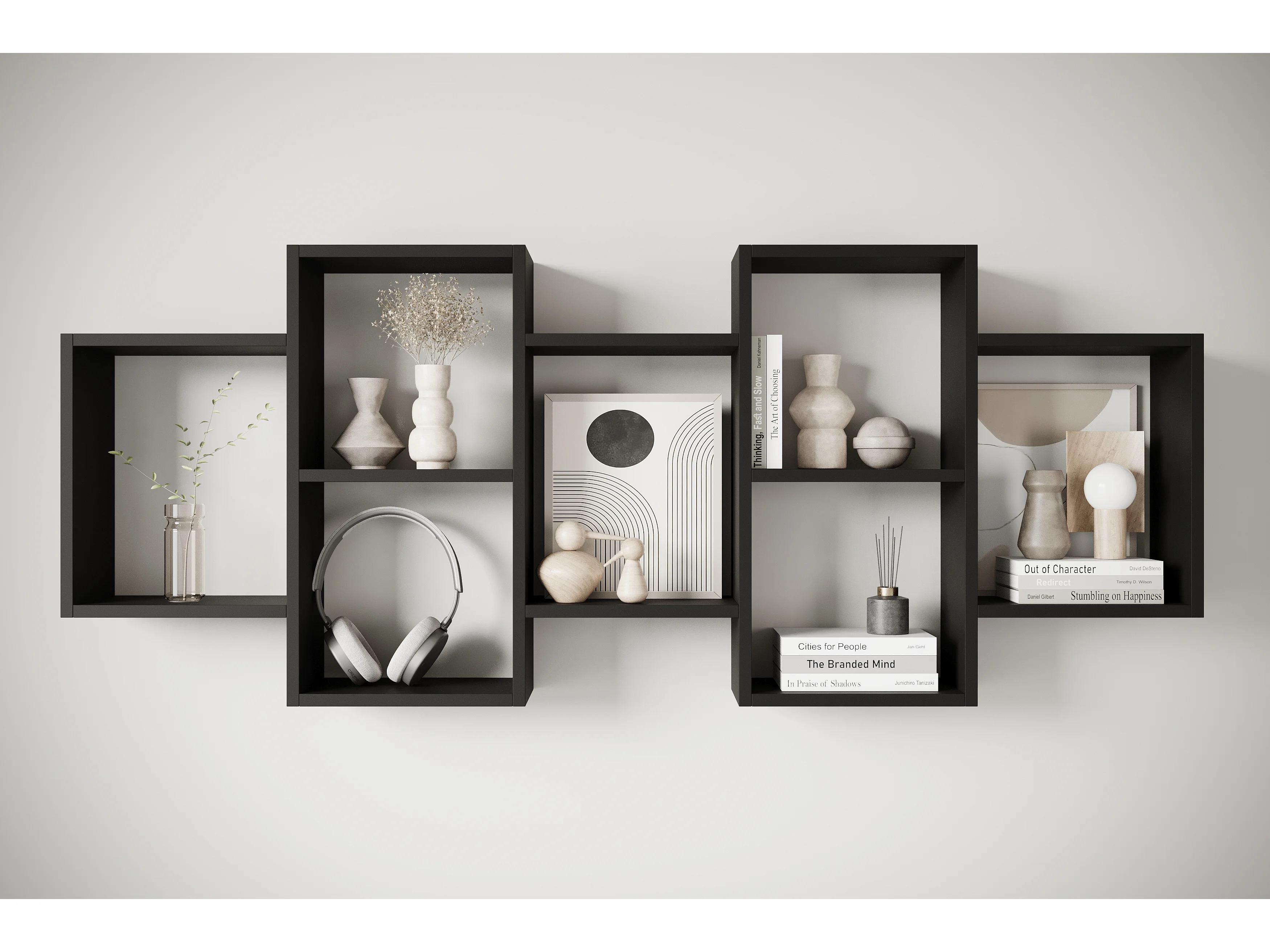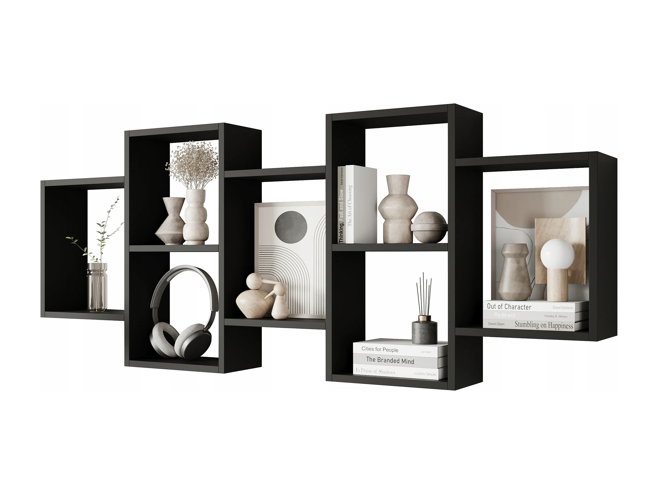 Étagère murale moderne avec 3 rectangles pour salon, chambre et bureau, noir mat