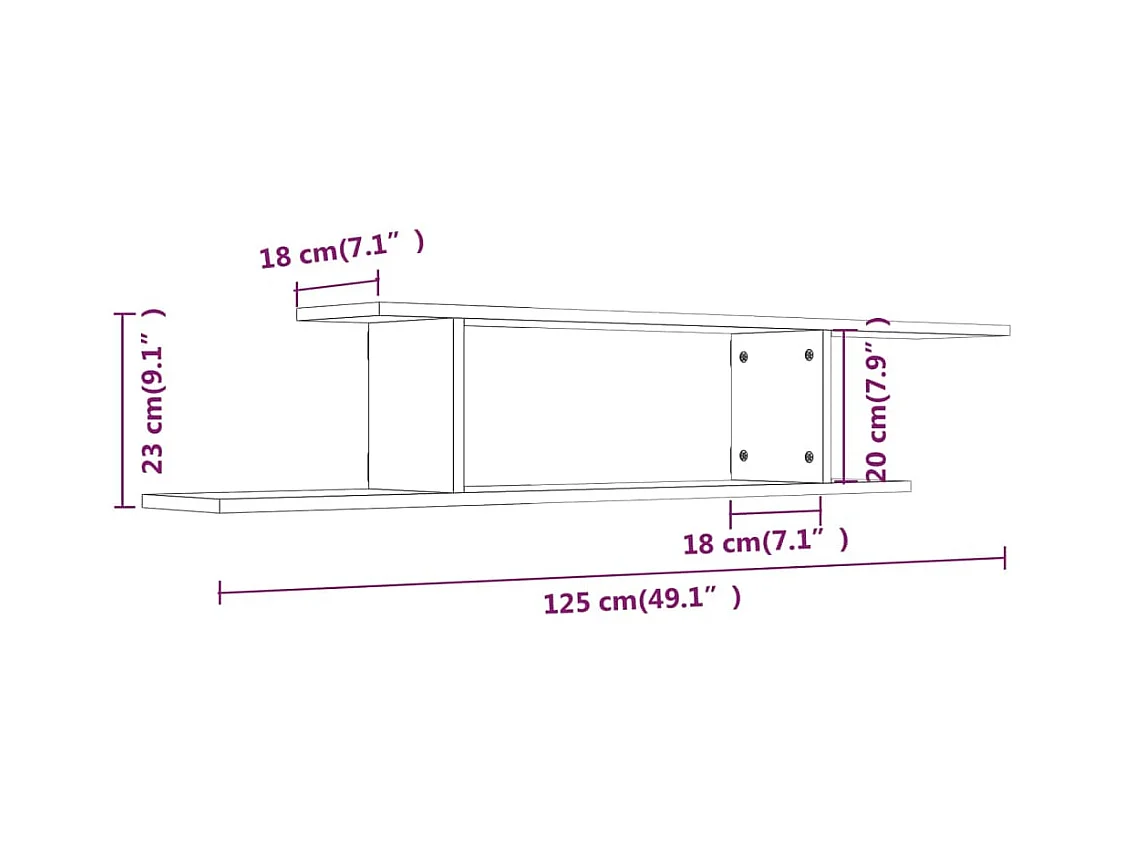 Étagère TV murale Chêne fumé 125x18x23 cm Bois d'ingénierie