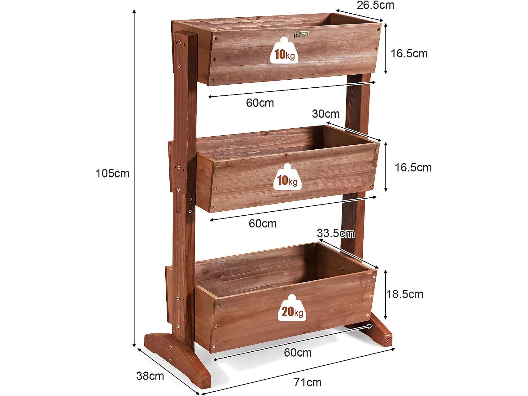 Etagères à Plantes en Bois à 3 Niveau Amovibles Hauteur et Inclinaison Ajustable Multifonctions Intérieur/Extérieur
