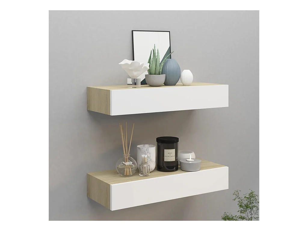 Étagères à tiroir murales 2 pcs Chêne et blanc 60x23,5x10cm MDF OFR78758 BonneVie Meuble
