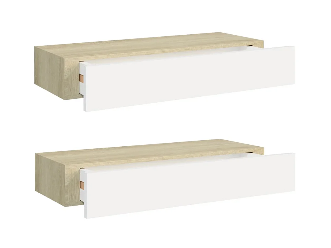 Étagères à tiroir murales 2 pcs Chêne et blanc 40x23,5x10cm MDF OFR63249 BonneVie Meuble