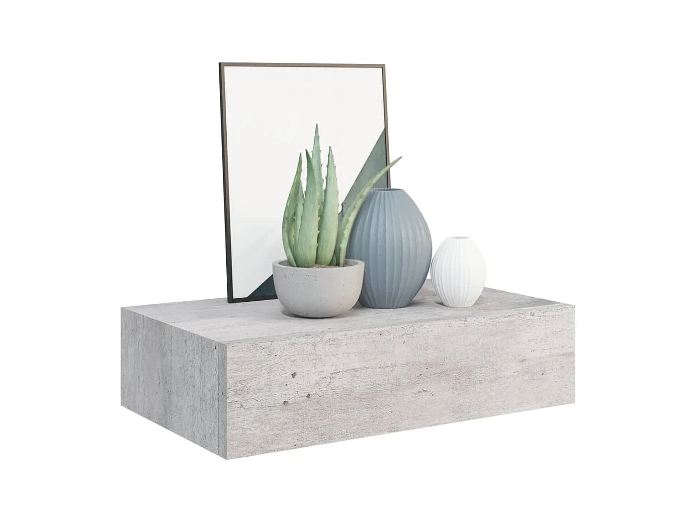 Étagère à tiroir murale Gris béton 40x23,5x10 cm MDF OFR30312 BonneVie Meuble