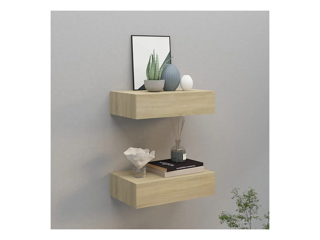 Étagères à tiroirs murales 2 pcs chêne 40x23,5x10 cm MDF OFR44327 BonneVie Meuble