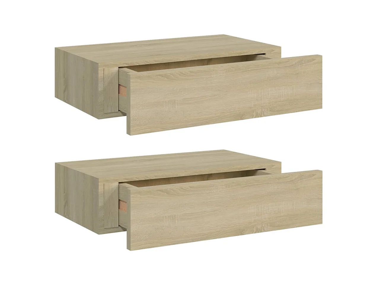 Étagères à tiroirs murales 2 pcs chêne 60x23,5x10 cm MDF OFR50488 BonneVie Meuble