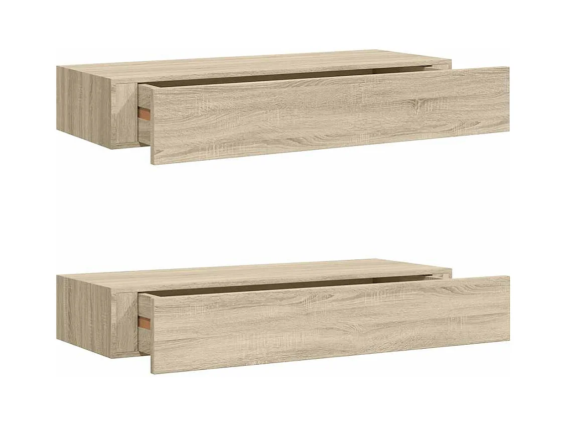 Étagères à tiroirs murales 2 pcs chêne 60x23,5x10 cm MDF