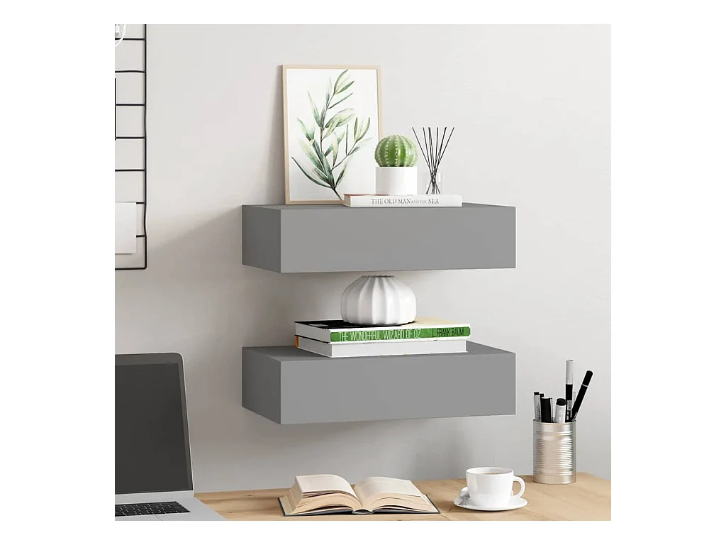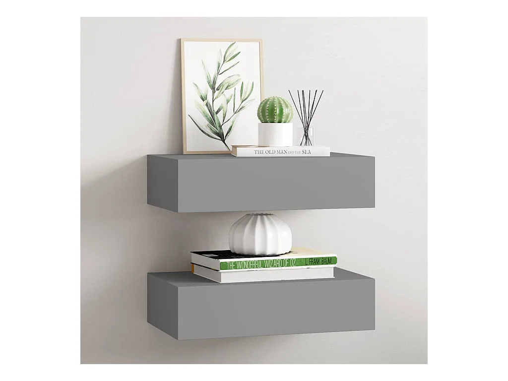 Étagères à tiroirs murales 2 pcs gris 40x23,5x10 cm MDF