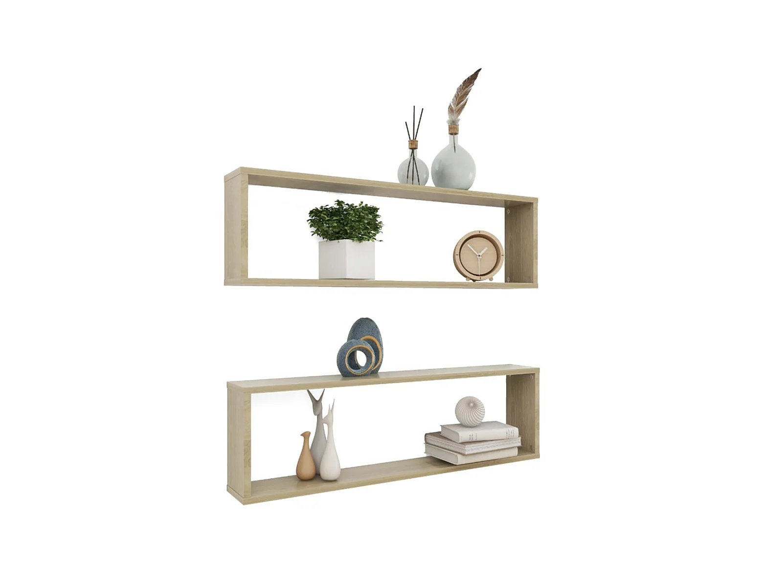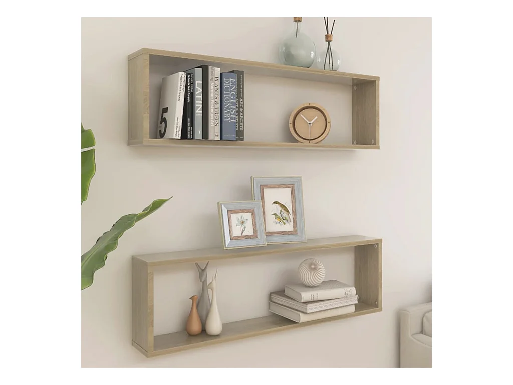 Étagères cube murales 2 pcs Chêne Sonoma 100x15x30 cm Aggloméré OFR44166 BonneVie Meuble