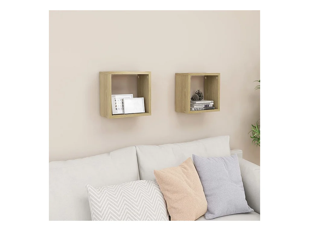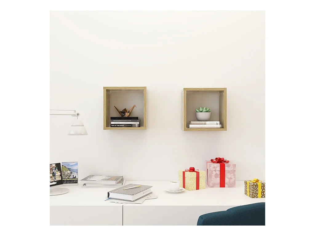 Étagères cube murales 2 pcs chêne sonoma bois d'ingénierie