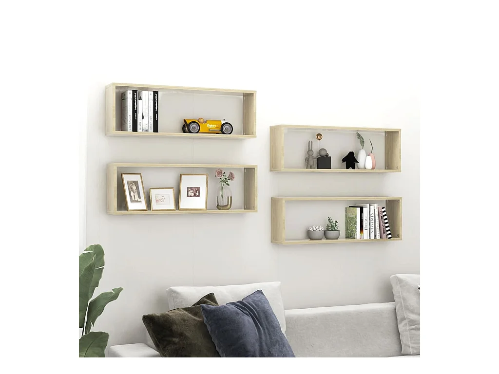 Étagères cube murales 4 pcs Chêne sonoma 80x15x26,5cm Aggloméré OFR27619 BonneVie Meuble