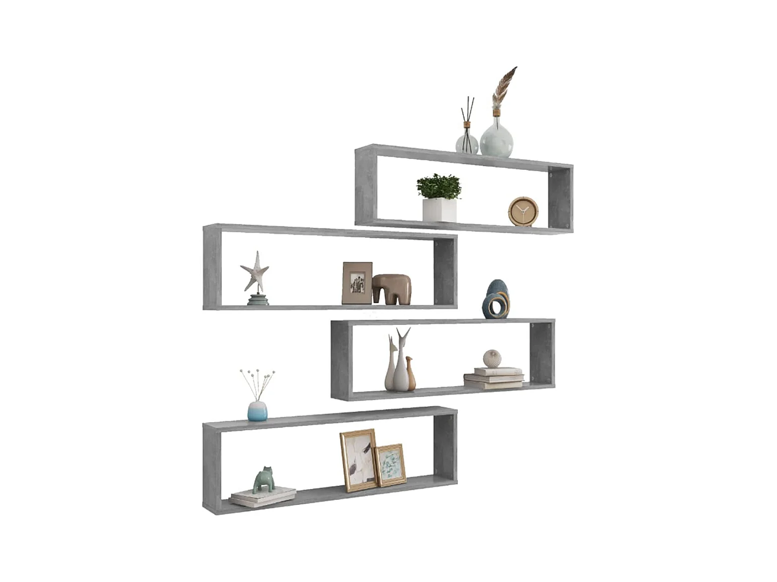 Étagères cube murales 4 pcs gris béton bois d'ingénierie