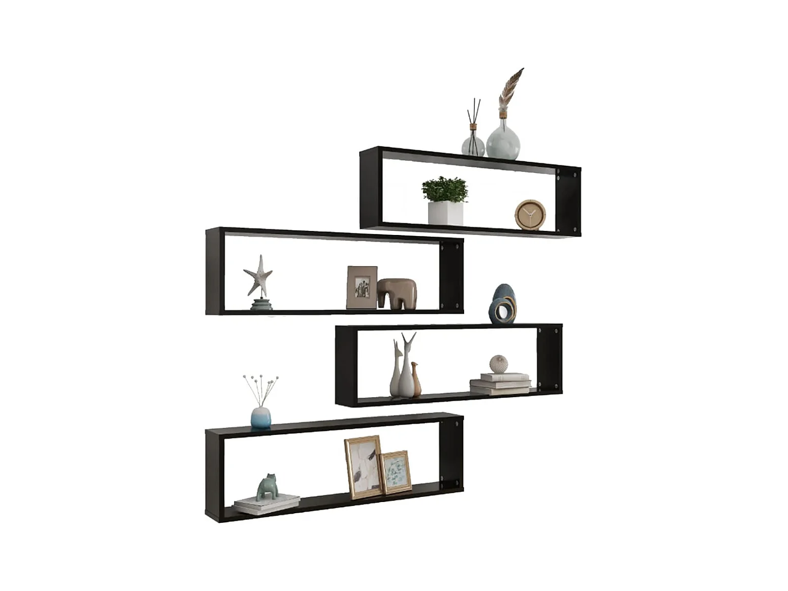 Étagères murales cube 4 pcs Noir 60x15x23 cm Bois d’ingénierie