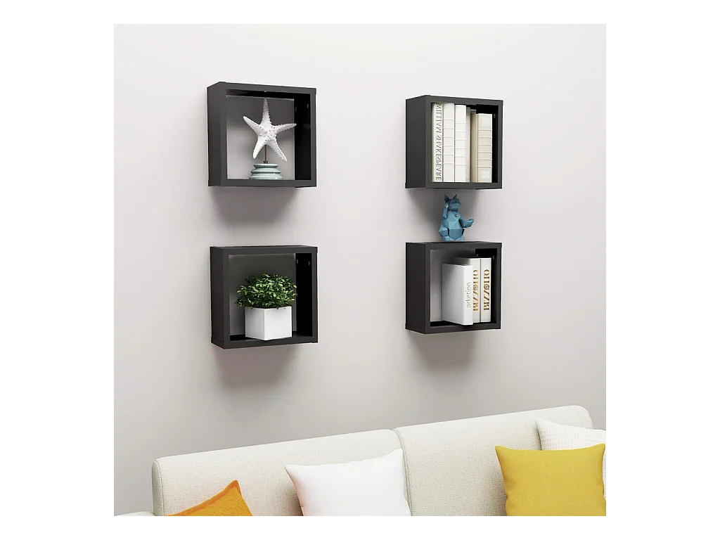Étagères cube murales 4 pcs noir 30x15x30 cm